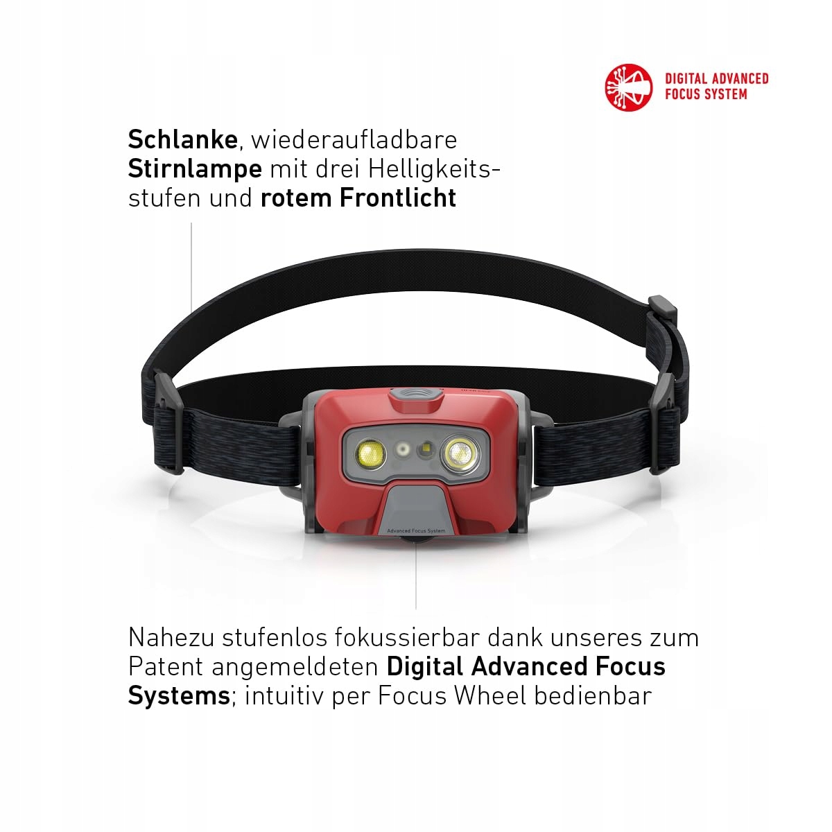 Premium latarka Led z innowacją na świecie: światło czołowe z cyfrowym systemem zaawansowanego ogniskowania, idealne do oświetlenia bliskiego i peryferyjnego. Wytrzymała aluminiowa obudowa z wbudowanym pokrętłem do ustawiania ogniskowania