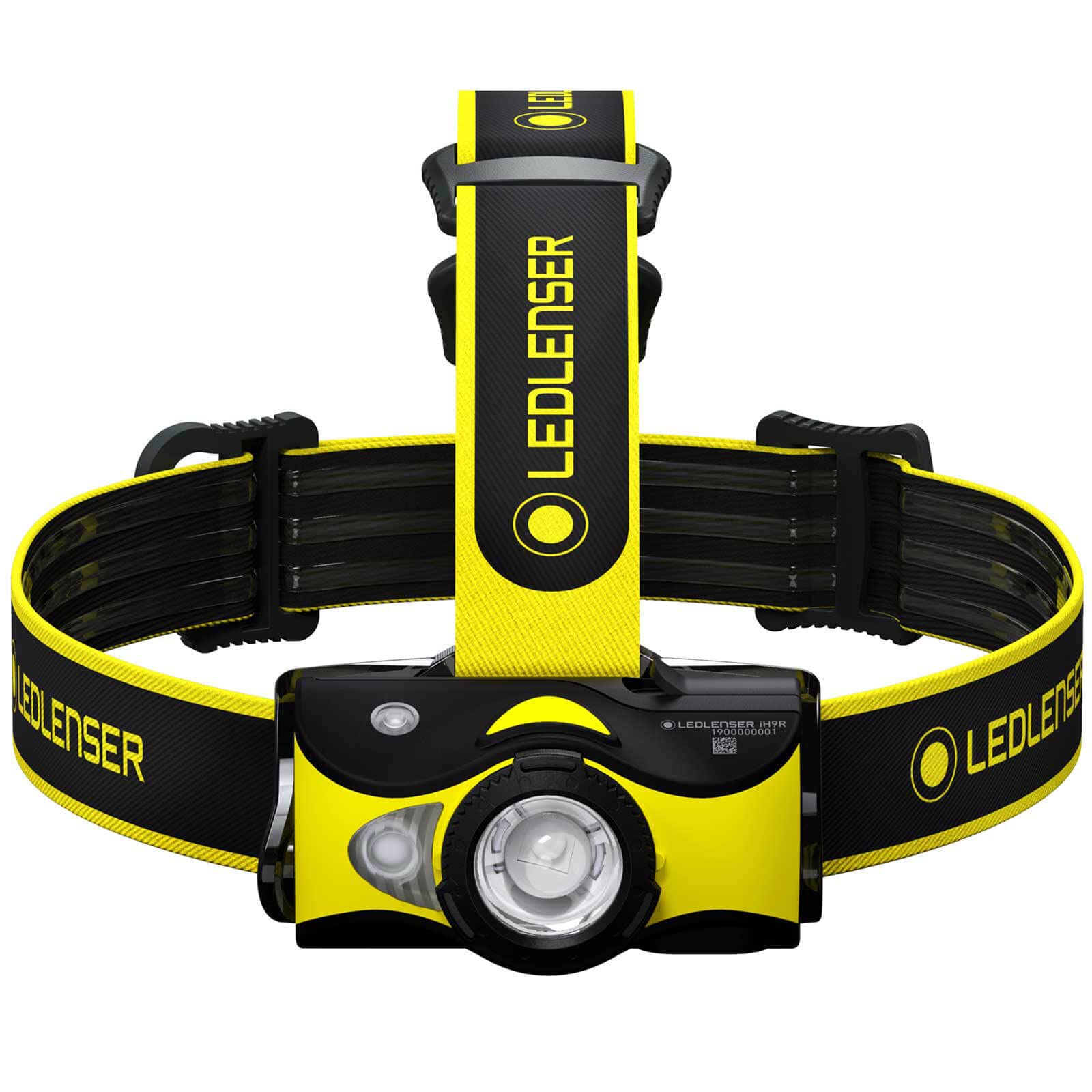 Ledlenser iH9R, solidna czołówka LED dla rzemieślników, elektryków, pracowników przemysłowych, możliwość zasilania akumulatorem lub bateriami, 2 tryby energetyczne, dodatkowa dioda LED wielokolorowa, w zestawie mocowanie na kask