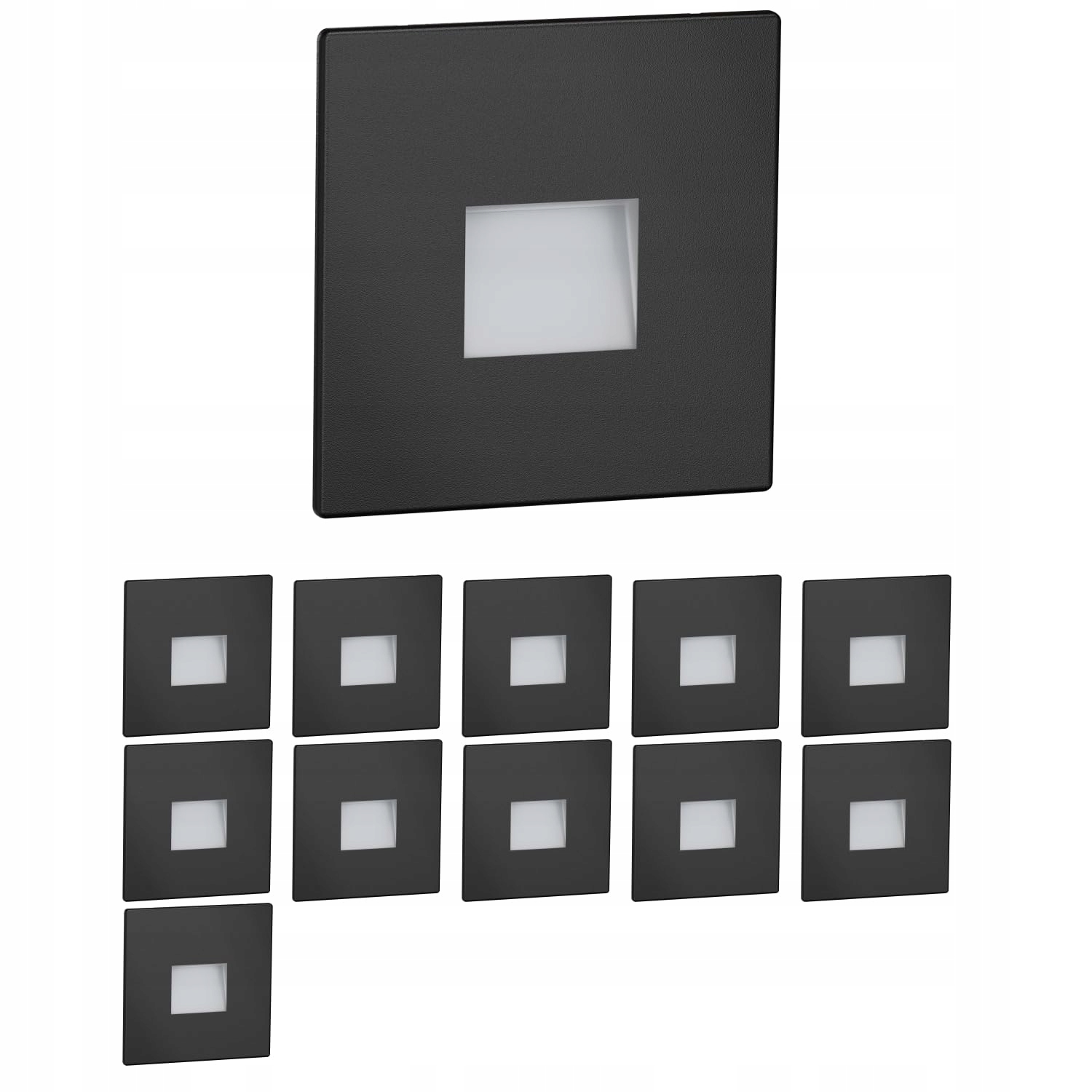 ledscomde 12 sztuk LED oświetlenie schodowe/wbudowana lampa ścienna FOW do wnętrz i na zewnątrz, downlight, kwadratowa, czarna, 85 x 85 mm, ciepła biel