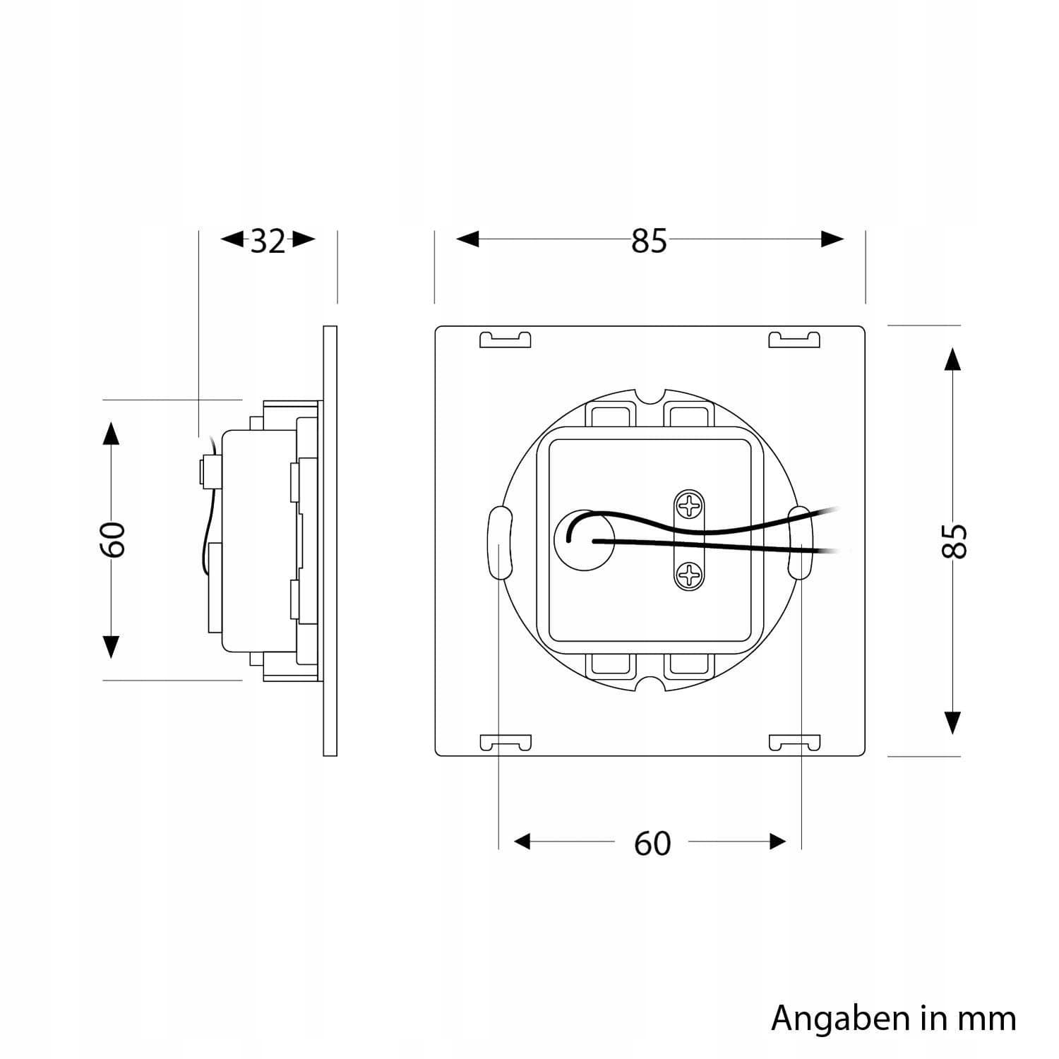 [Kompaktowa konstrukcja] - Wymiary: 85 x 85 x 32 mm; Głębokość montażu: 29 mm