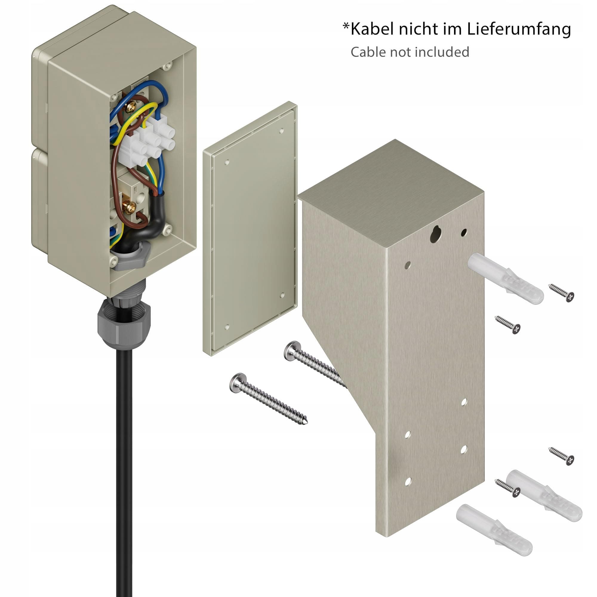 [Stopień ochrony IP44] - Zaprojektowane na zewnątrz, solidna obudowa ze stali nierdzewnej gniazda PIWI zapewnia optymalną ochronę przed bryzgami wody i wpływem warunków atmosferycznych różnych pór roku. Bezpieczne i eleganckie – dokładnie to, czego potrzebujesz do swojej przestrzeni zewnętrznej.