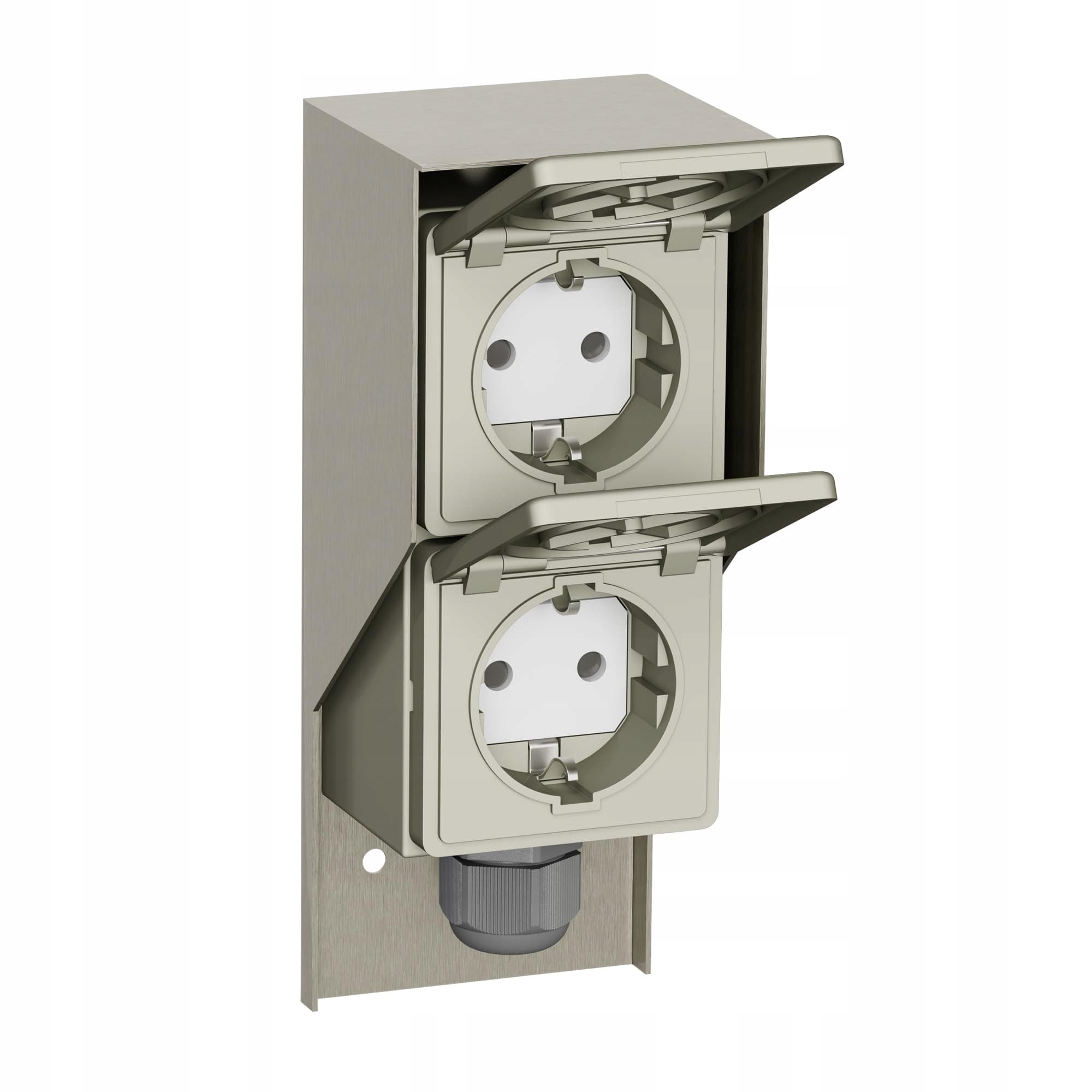 LEDSCOMDE Gniazdo Zewnętrzne PIWI IP44 Podwójne Stal Nierdzewna Pionowe