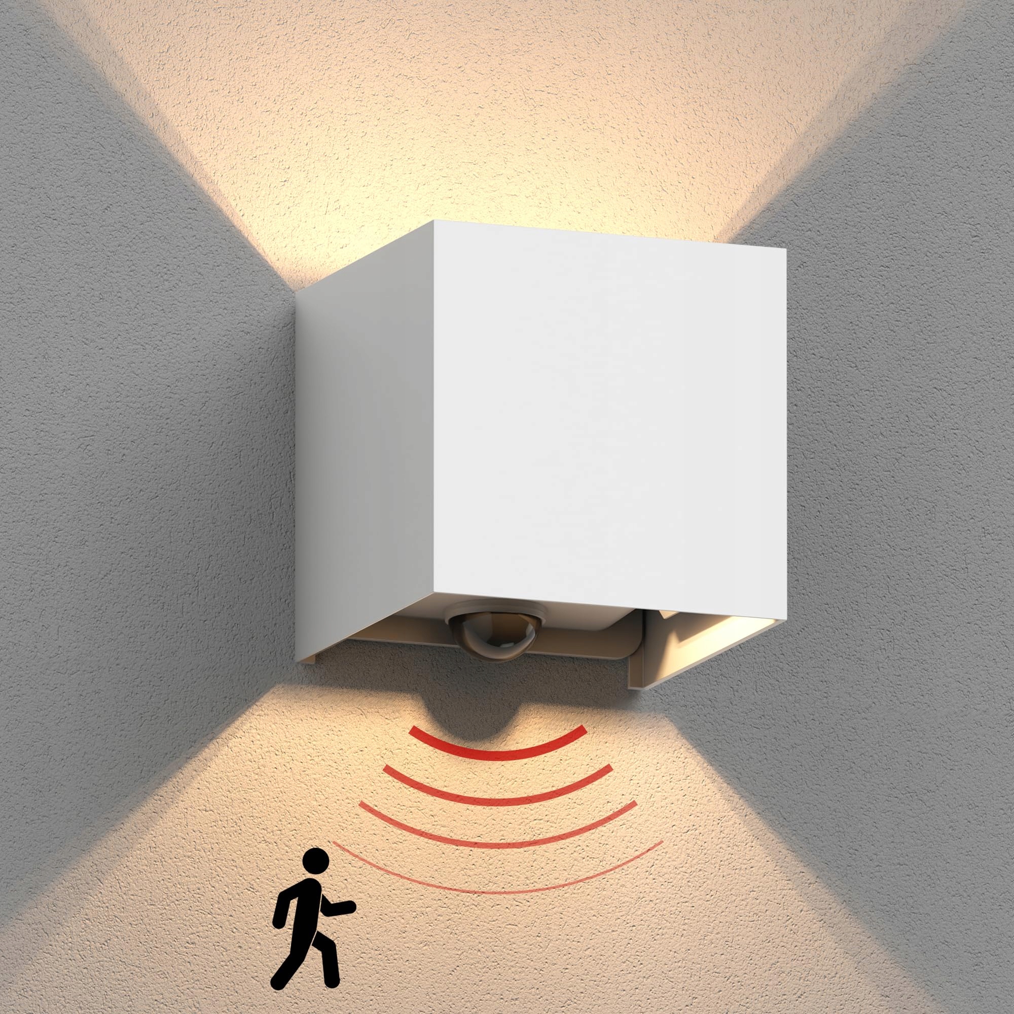 LEDSCOMDE Lampa Ścienna Zewnętrzna IP65 Czujnik Ruchu Biała Kwadratowa