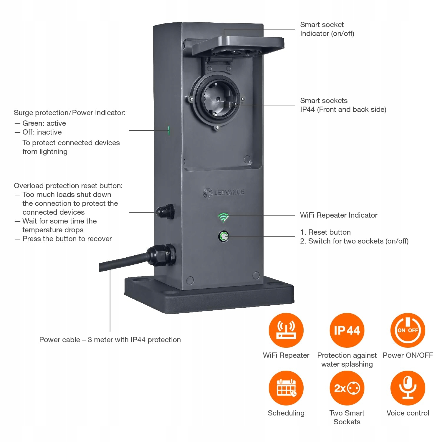 LEDVANCE SMART+ WiFi Terminal zewnętrzny EU z wbudowanym repeaterem i 2 gniazdami, biały, 230V, rozszerza strefę WLAN na zewnątrz, łączenie urządzeń bezprzewodowych, sterowanie aplikacją, 3 lata gwarancji, IP44