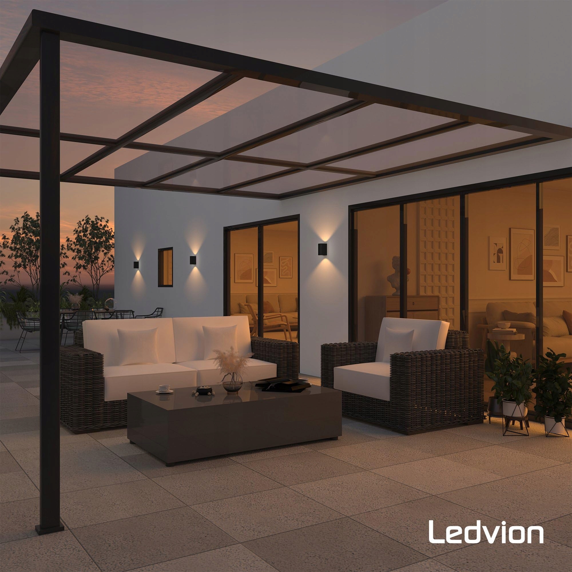 Stopień ochrony to IP54, a dzięki odpornej na warunki atmosferyczne obudowie lampa ścienna jest szczególnie odpowiednia jako oświetlenie ogrodowe.