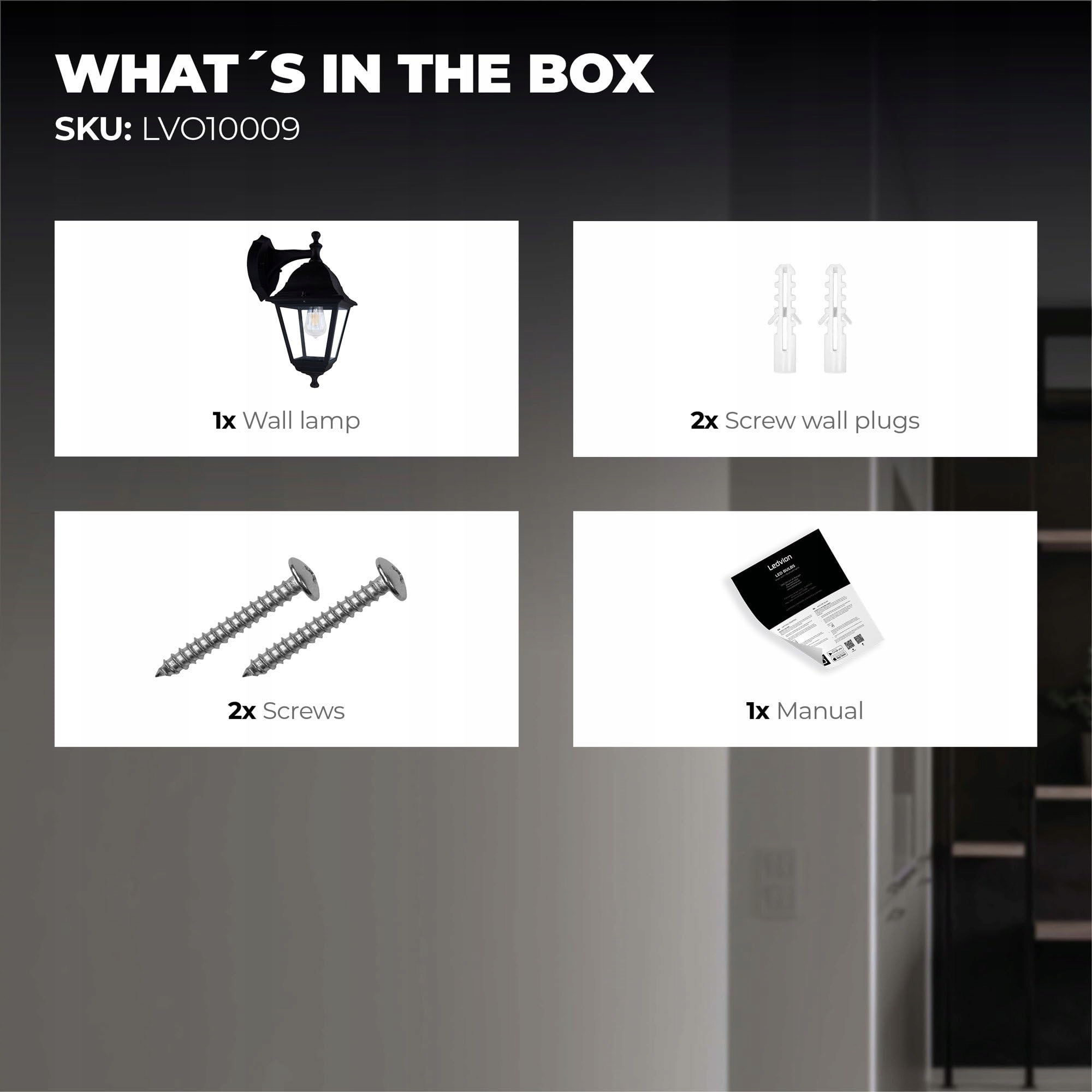 LEDVION Lampa Ścienna LED E27 IP44 Czarna Klasyczna Vela S Aluminium Ogród | Premium Supply