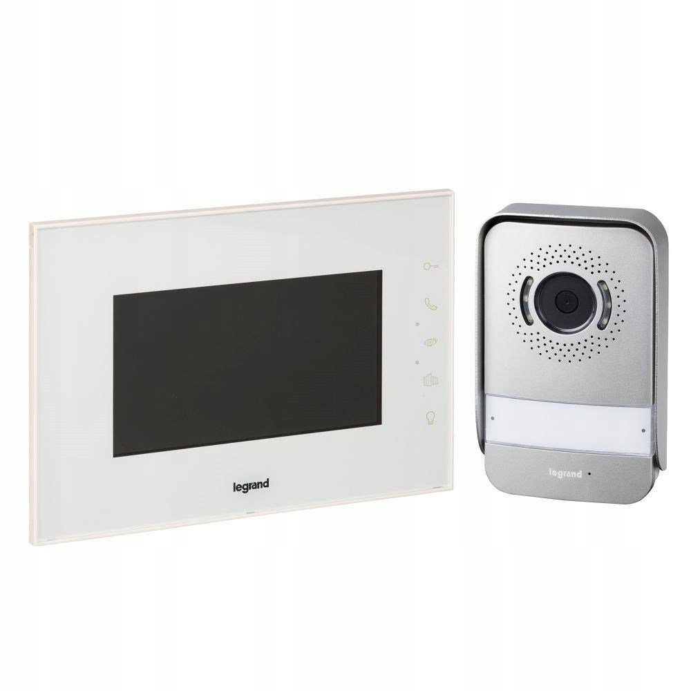 LEGRAND, wideofon z 2-przewodowym podłączeniem, 7-calowy błyszczący kolorowy monitor i kamera szerokokątna, 2 otwieracze drzwi do drzwi i bramy ogrodowej/garażu, zestaw dla 1-/2-rodzinnego domu, IK07, IP54, kolor: biały, 369230