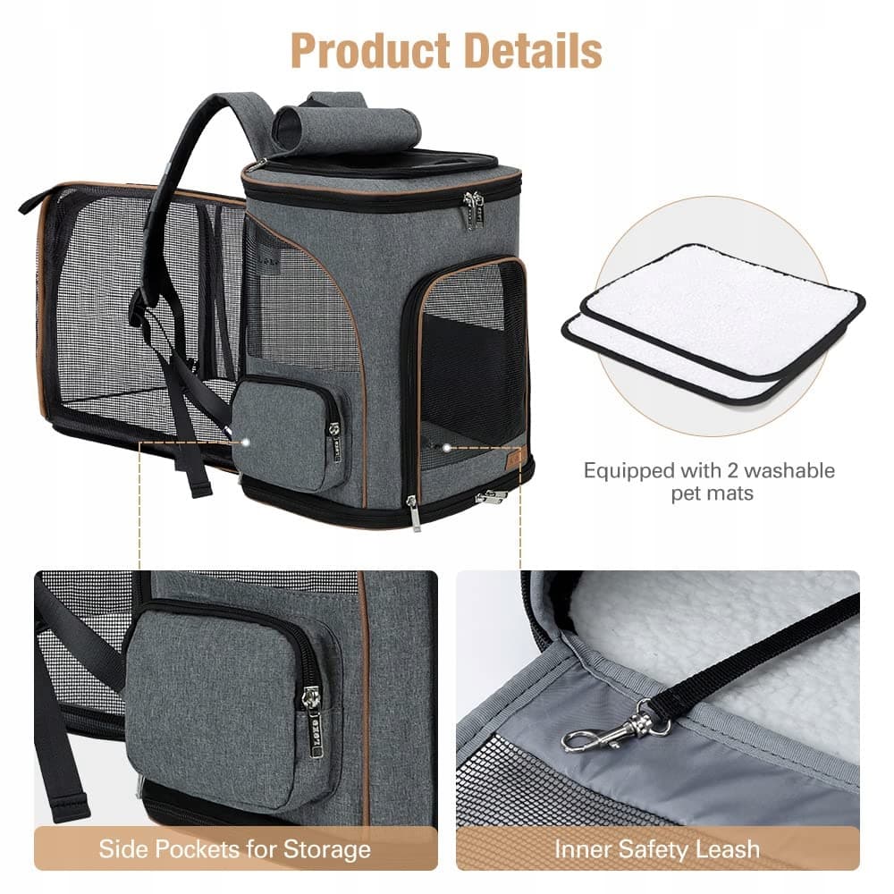 LEKESKY Plecak Transportowy Dla Kotów I Psów Do 10kg Rozszerzalny Szary XL