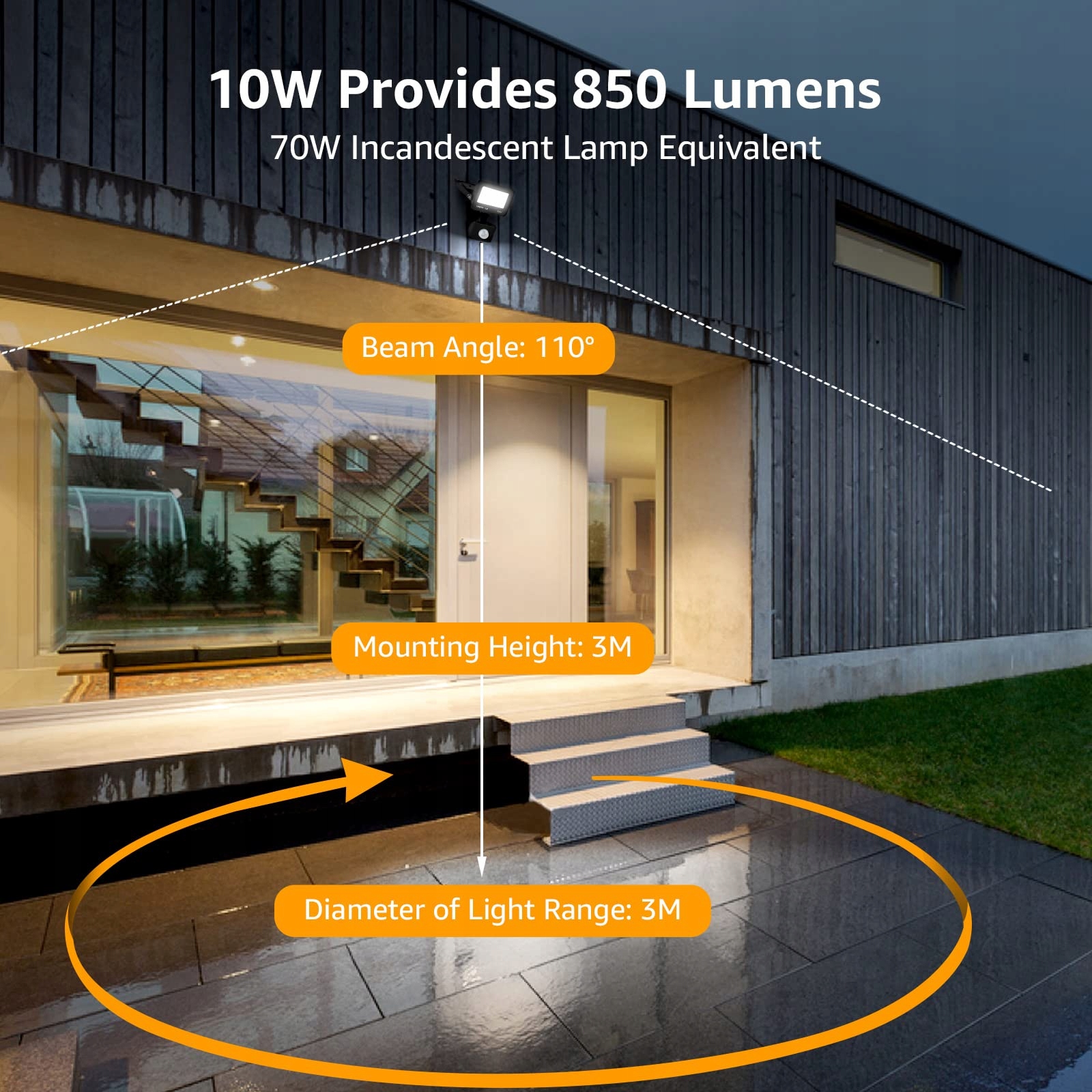 [ Odporny na wiatr i deszcz ]: Klasa ochrony reflektora LED to IP65, a czujnika podczerwieni IP54. Obudowa z metalu i hartowanego szkła chroni przed uderzeniami pioruna, wilgocią i kurzem, jest stabilna i trwała.