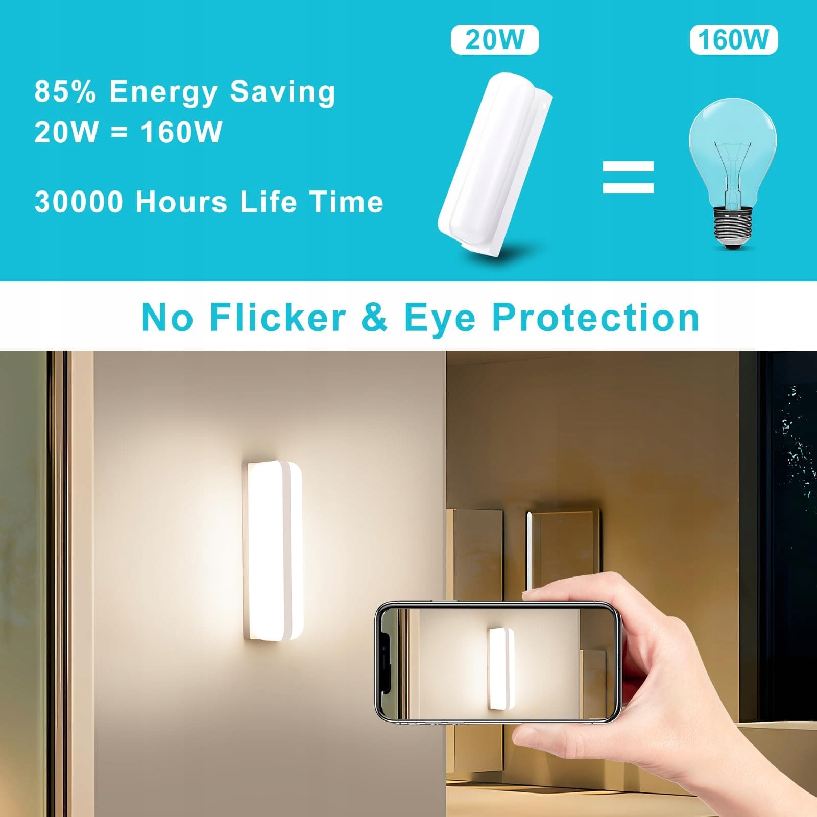 【Oświetlenie góra i dół】Klasyczny owalny kształt oraz górny i dolny design oświetlenia nadają jej bardziej elegancki wygląd. Ta lampa ścienna do wnętrz zapewnia nie tylko wysoki poziom jasności w Twoim pomieszczeniu, ale także tworzy przyjemną atmosferę i chroni Twoje oczy.