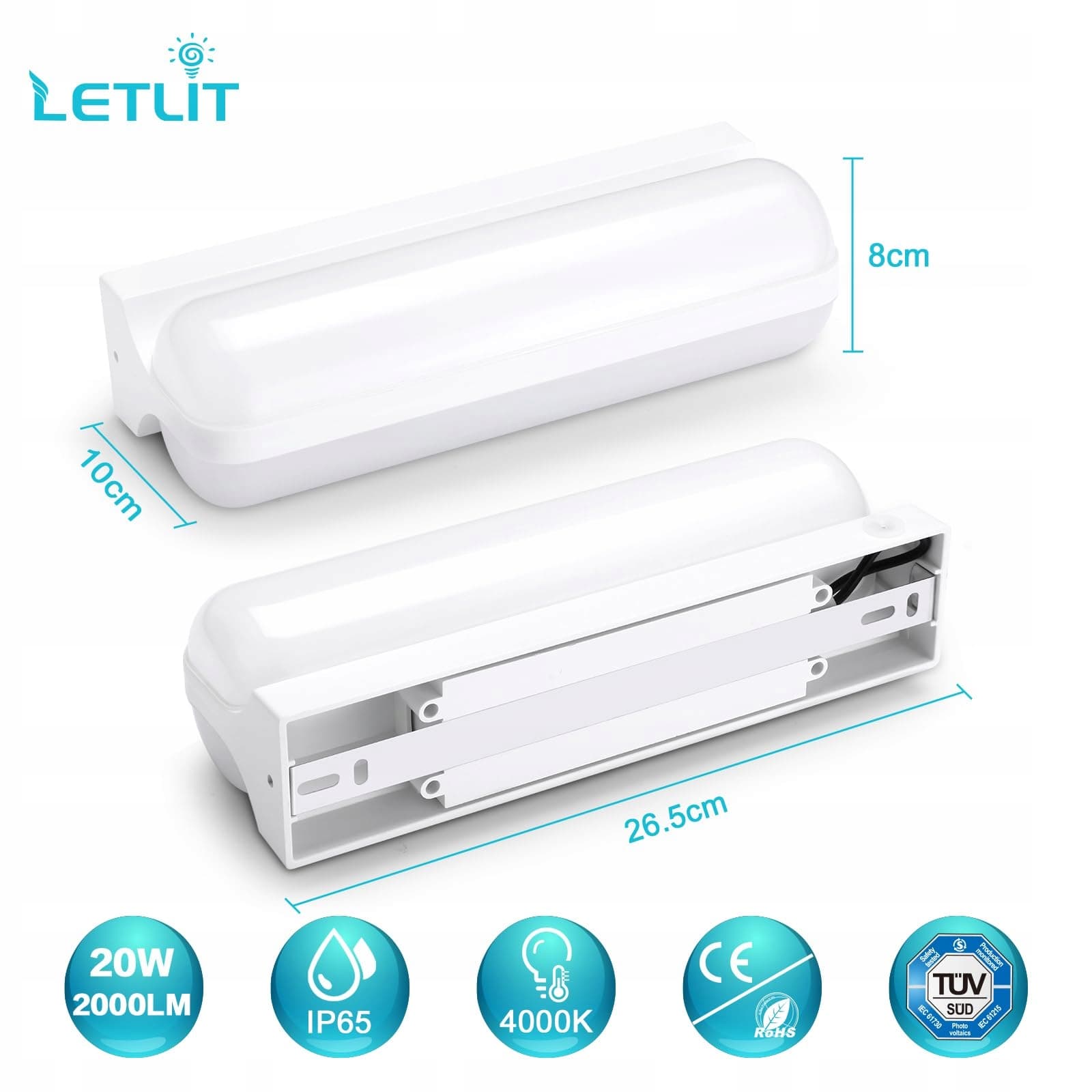 Letlit LED Lampa ścienna do wnętrz/na zewnątrz biała, 20W 2000LM nowoczesna lampa ścienna z oświetleniem góra i dół, 4000K IP65 lampa do pomieszczeń wilgotnych, lampa ścienna do piwnicy, lampy LED na schody, korytarz, piwnicę, ogród, WC