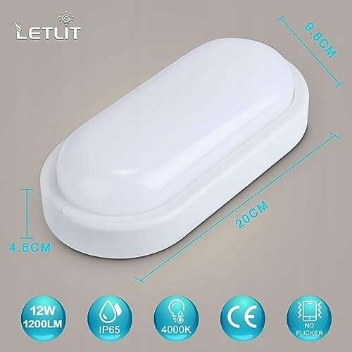 Letlit LED Lampa sufitowa, 2 sztuki, 12W 1200LM Lampa LED, Lampa ścienna, Lampa sufitowa Owalna, IP54 Lampa LED do pomieszczeń wilgotnych, Neutralna biel 4000K Lampa do piwnicy na korytarz, schody, garaż