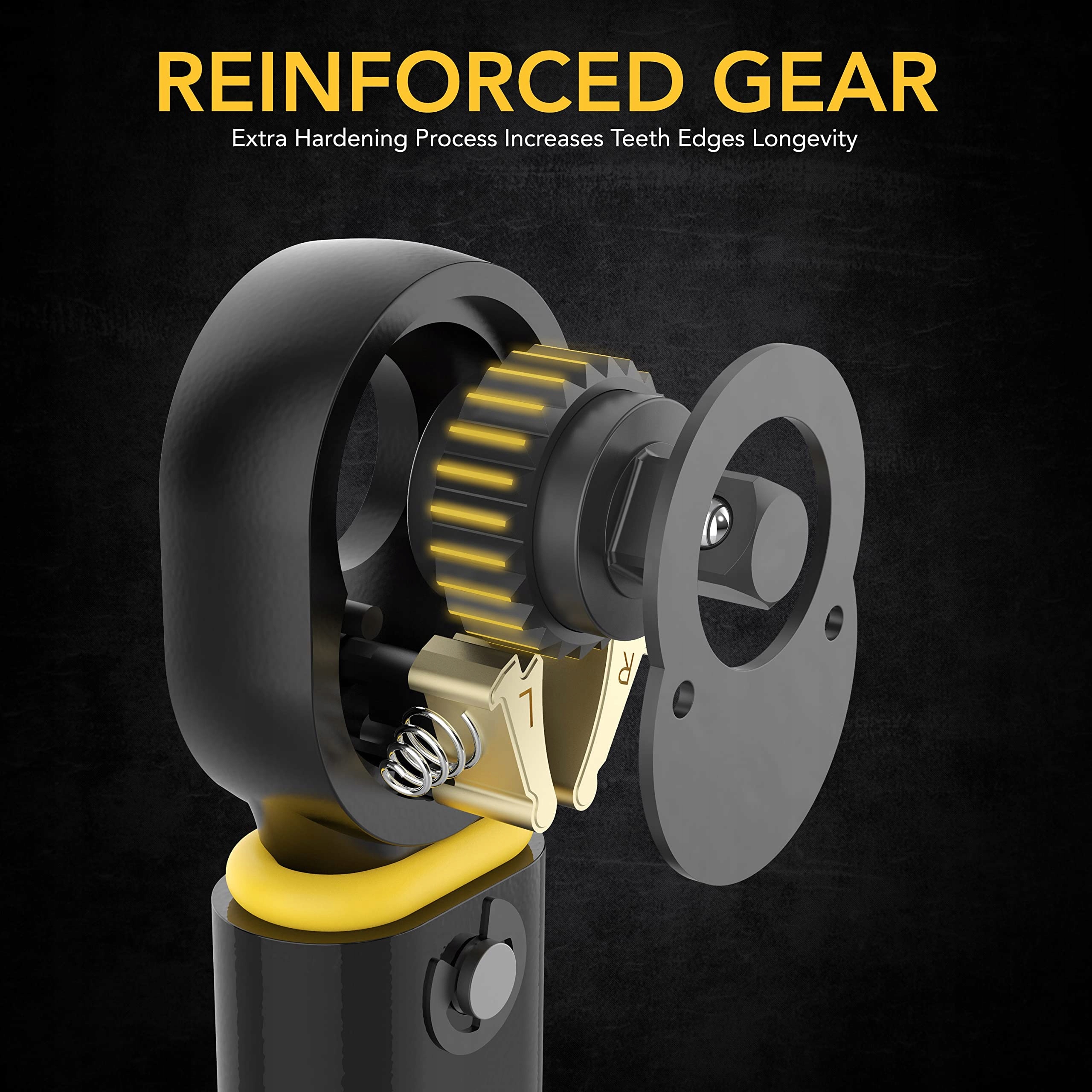 Trwałość – Wzmocniona głowica zębatki z hartowanej, poddanej obróbce cieplnej stali chromowo-wanadowej.