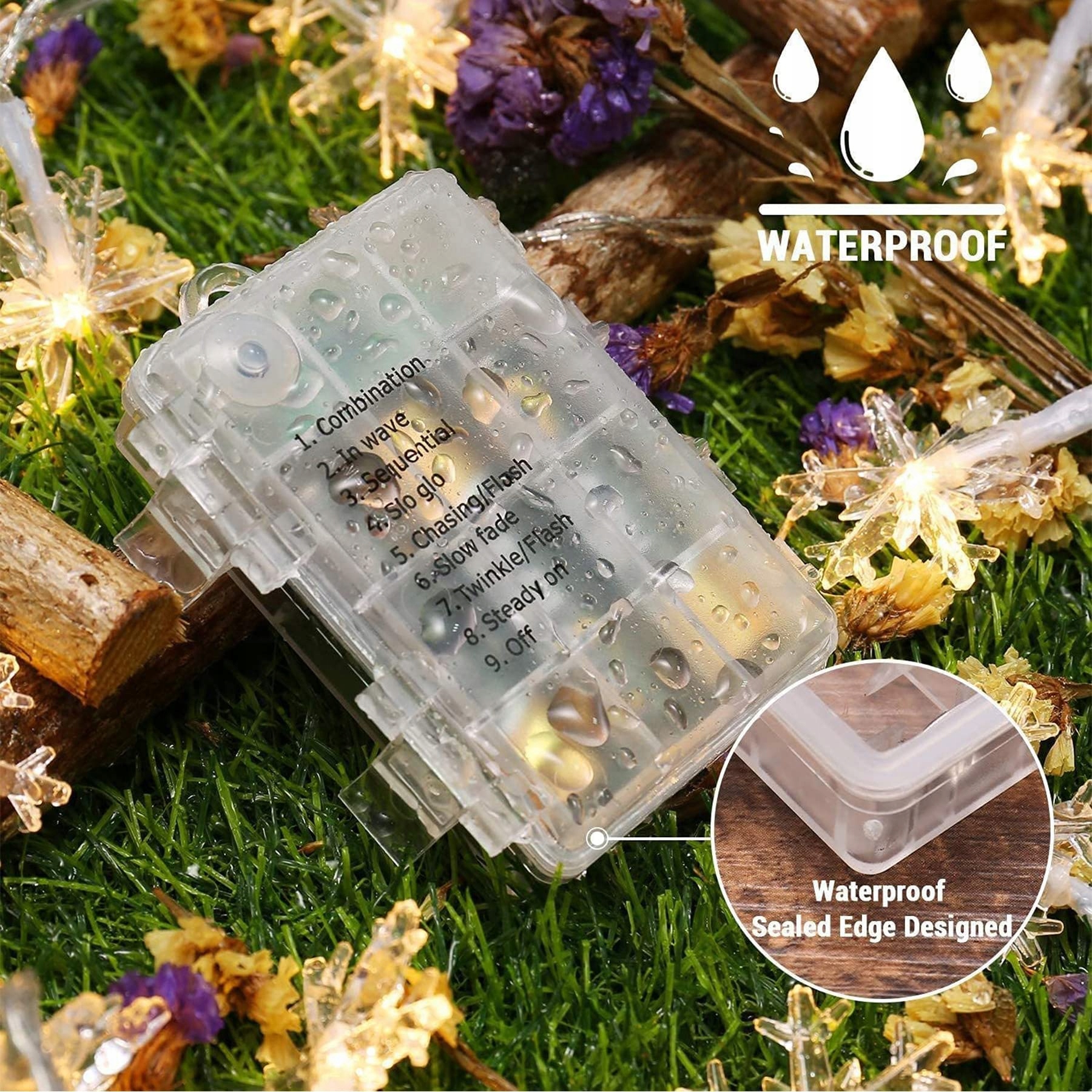 [Wodoodporny IP65 i bezpieczny w użyciu]: Nasze ciepłe białe światełka śnieżynek oraz obudowa na baterie są wodoodporne zgodnie z normą IP65 i wytrzymują deszcz oraz śnieg przez cały rok. Nie wpłynie to na użytkowanie w deszczowe lub wilgotne dni. Dzięki niskiej emisji ciepła nie musisz ich dotykać nawet przez długi czas, ponieważ izolowany przewód nie przegrzewa się podczas użytkowania.