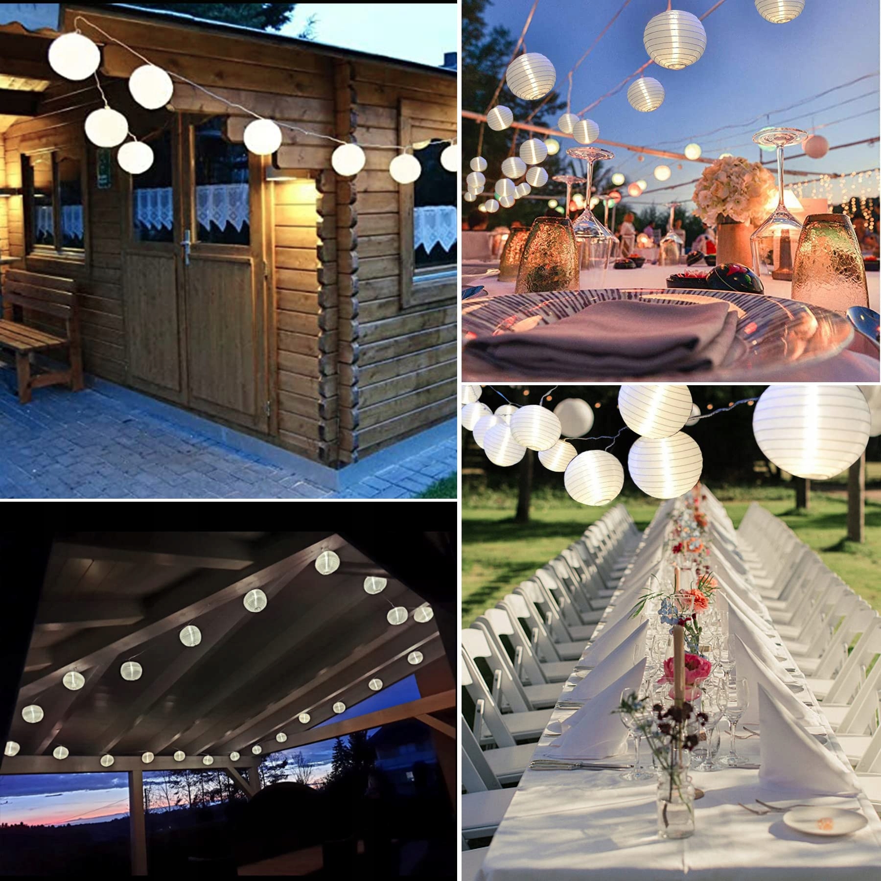 Lezonic solarne lampiony na zewnątrz, 8 metrów 30 LED lampionów, 8 trybów, wodoodporne, solarne lampiony białe do dekoracji balkonu, ogrodu, podwórka, wesela, dekoracji świątecznej (zimna biel)
