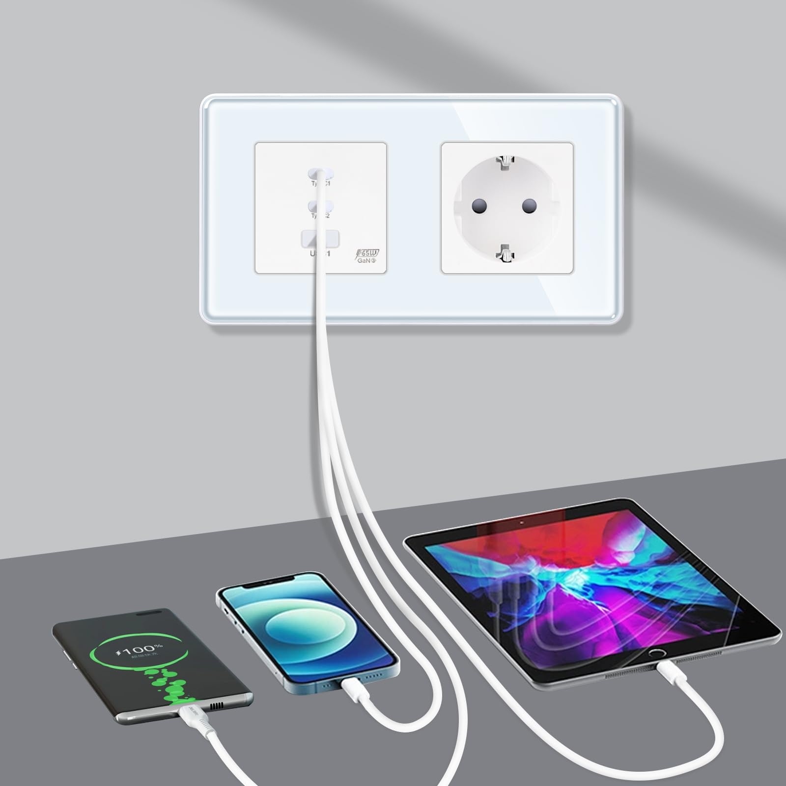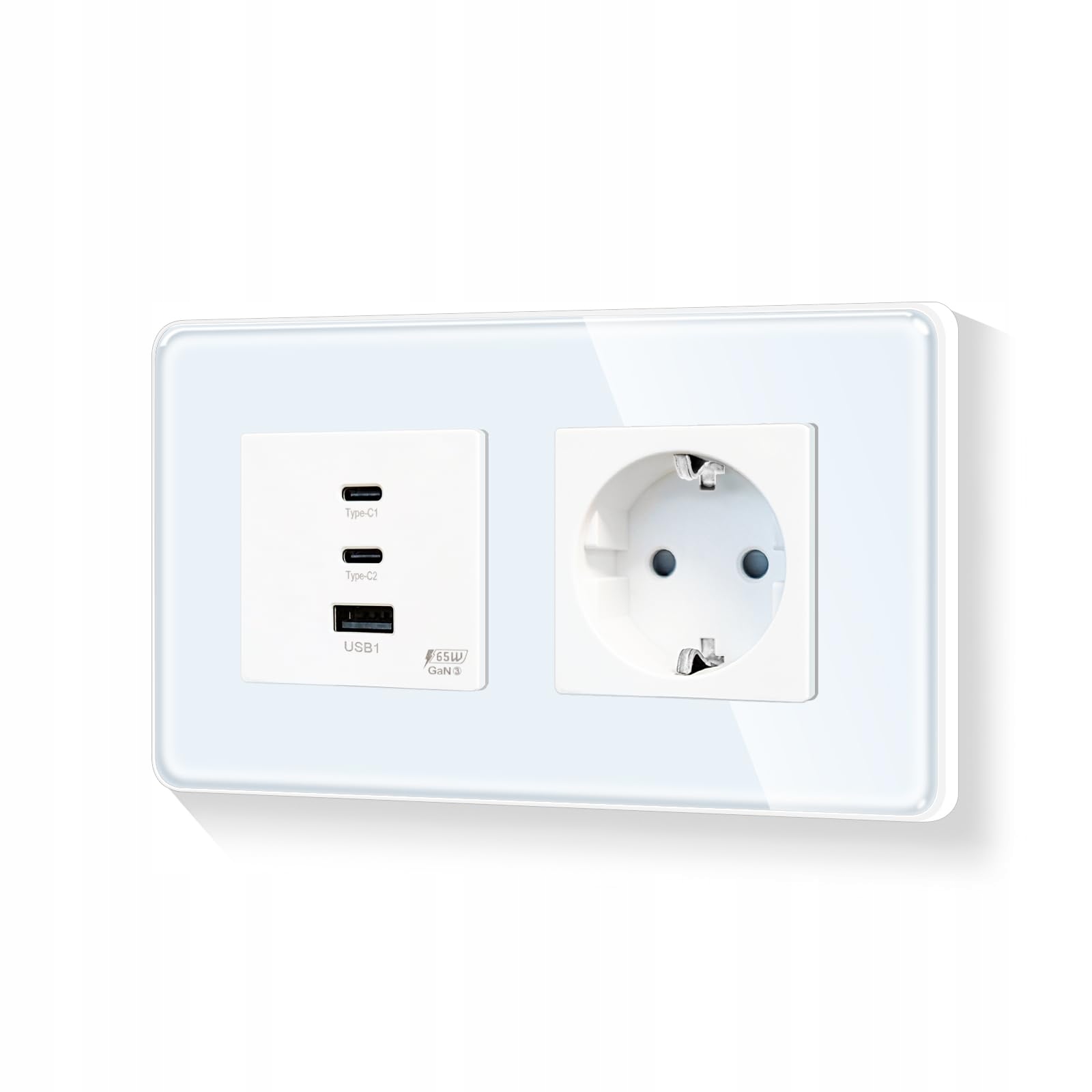 LIAONFOY Gniazdko Ścienne Szybkie Ładowanie 65W USB Typ C 20W Białe