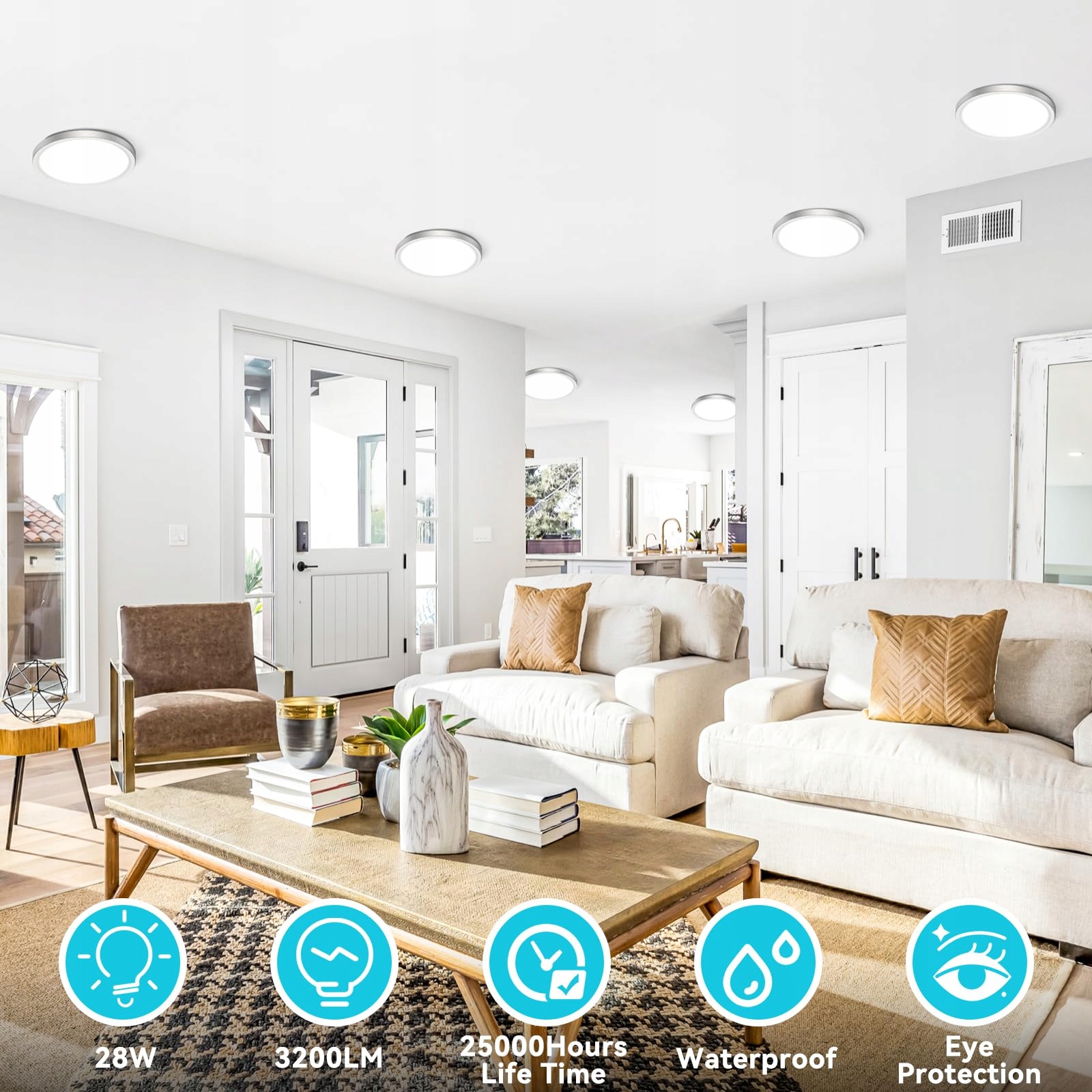 【Wyjątkowe bezpieczeństwo i ultracienki design】Wysokiej jakości, ognioodporna obudowa z tworzywa sztucznego zapewnia ochronę przed porażeniem prądem, wyciekami i zwarciami. Certyfikaty ETL/CE. Dzięki swojemu smukłemu, płaskiemu designowi to oświetlenie sufitowe może łatwo zastąpić stare oświetlenie bez potrzeby nowego okablowania. Ciesz się bezpieczeństwem i stylem w jednym
