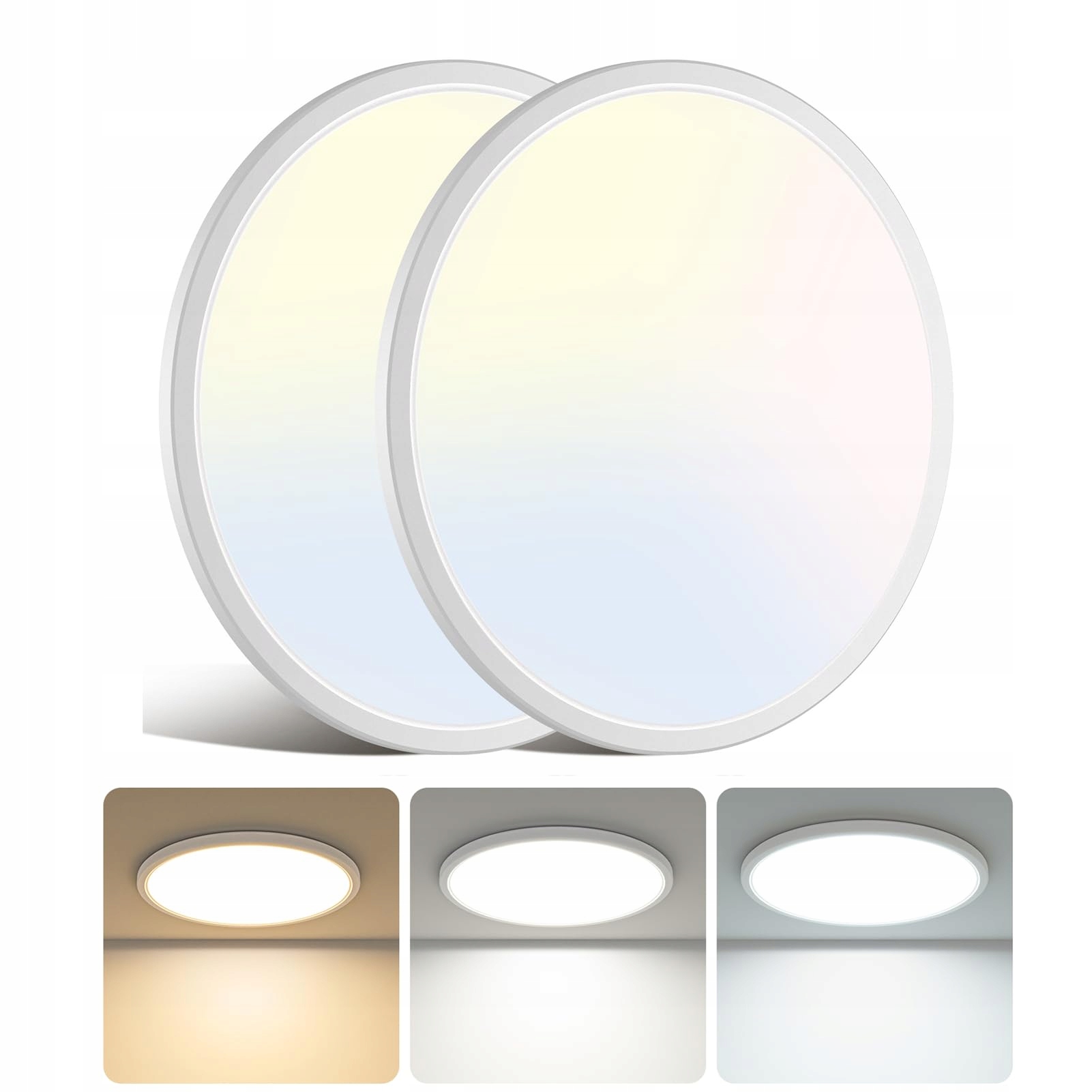 libtit 2 sztuki lampy sufitowej Led 24W, jasna lampa sufitowa płaska 2400LM, 33cm okrągła lampa łazienkowa (3000K 4500K 6000K), nowoczesna cienka lampa łazienkowa do sypialni, salonu, łazienki, korytarza
