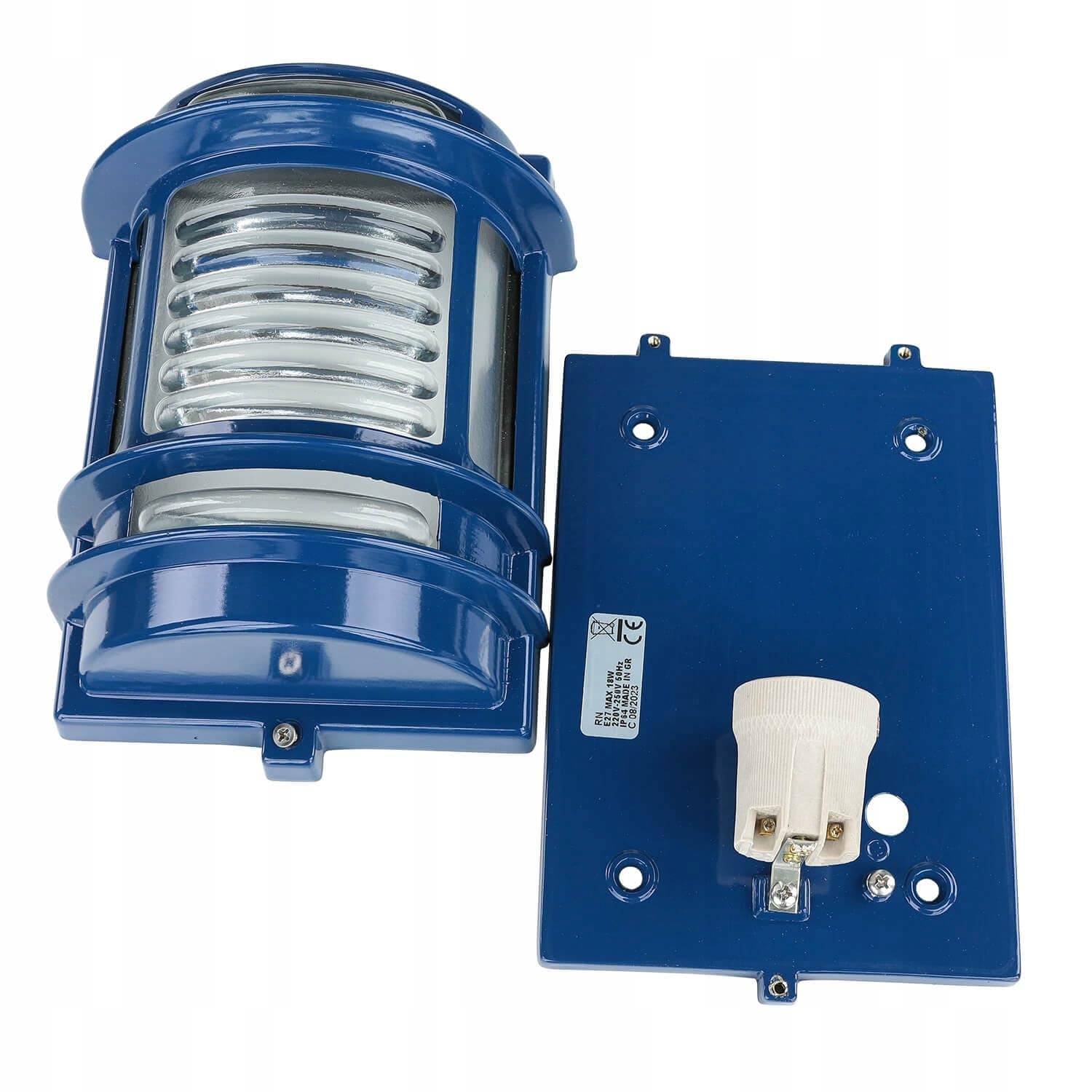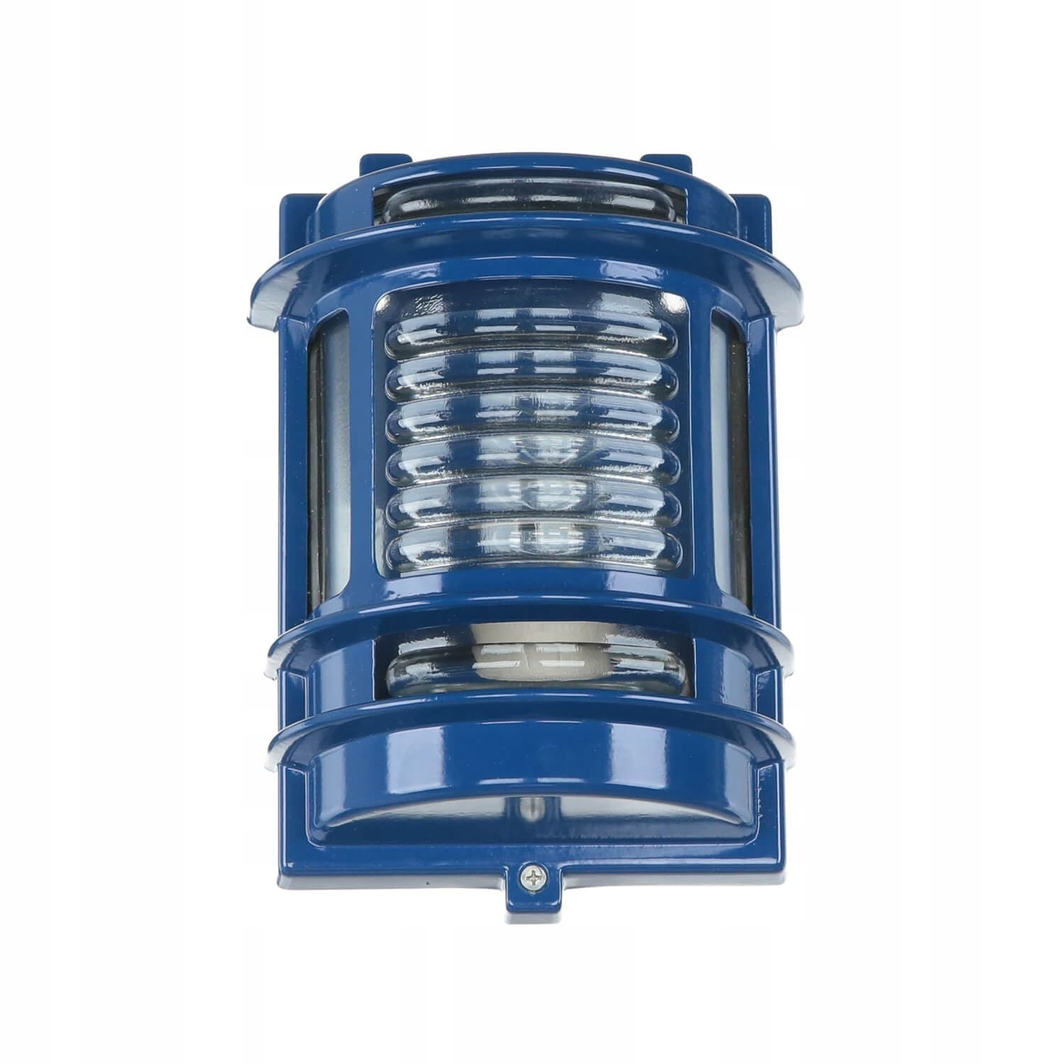 DESIGN: Nostalgiczny klimat zewnętrznej lampy ściennej w kolorze niebieskim przypomina dzięki ryflowanemu szkłu i ozdobnej kratce starożytną lampę okrętową: wyjątkowa ozdoba na Twojej ścianie domu