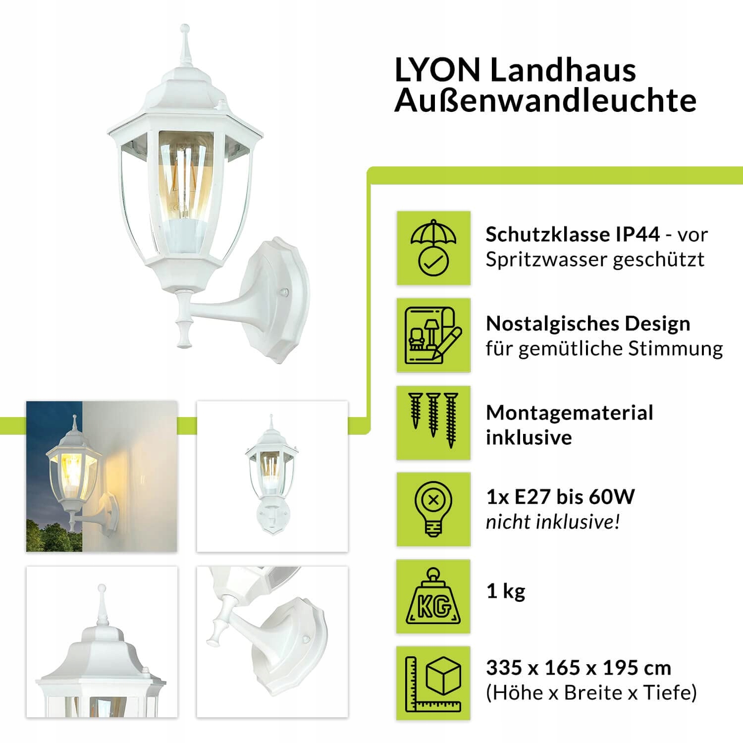 Doświadczenia świetlne Lampa ścienna stojąca aluminium szkło biała IP44 Wejście do domu Ogród Wysokość: 35,5 cm E27 Latarnia Rustykalna lampa zewnętrzna Taras LYON