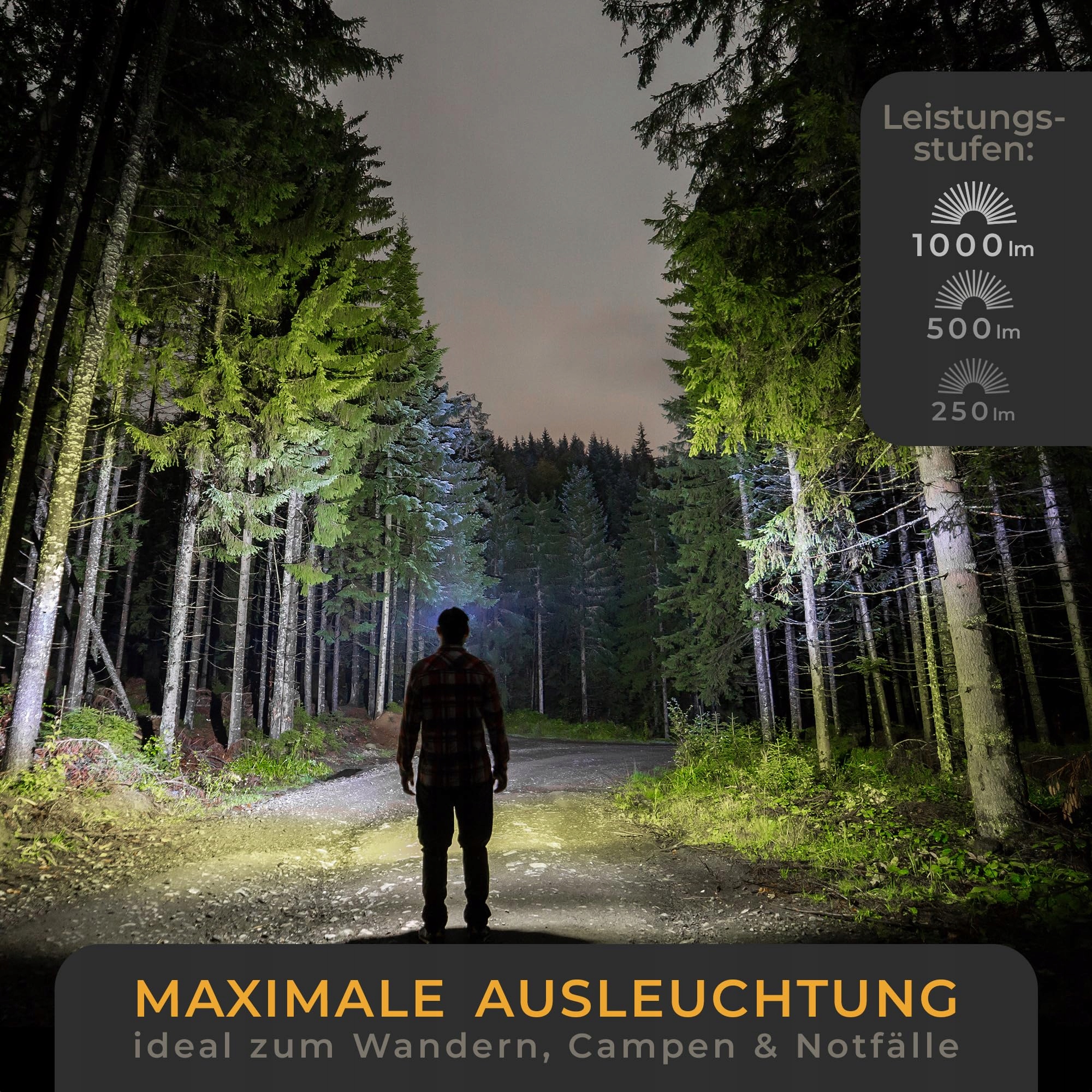 ✅ EKSTREMALNIE JASNA - dzięki 1000 Lumenom noc staje się dniem, gdy włączasz swoją latarkę czołową LED od LICHTMEISTER.