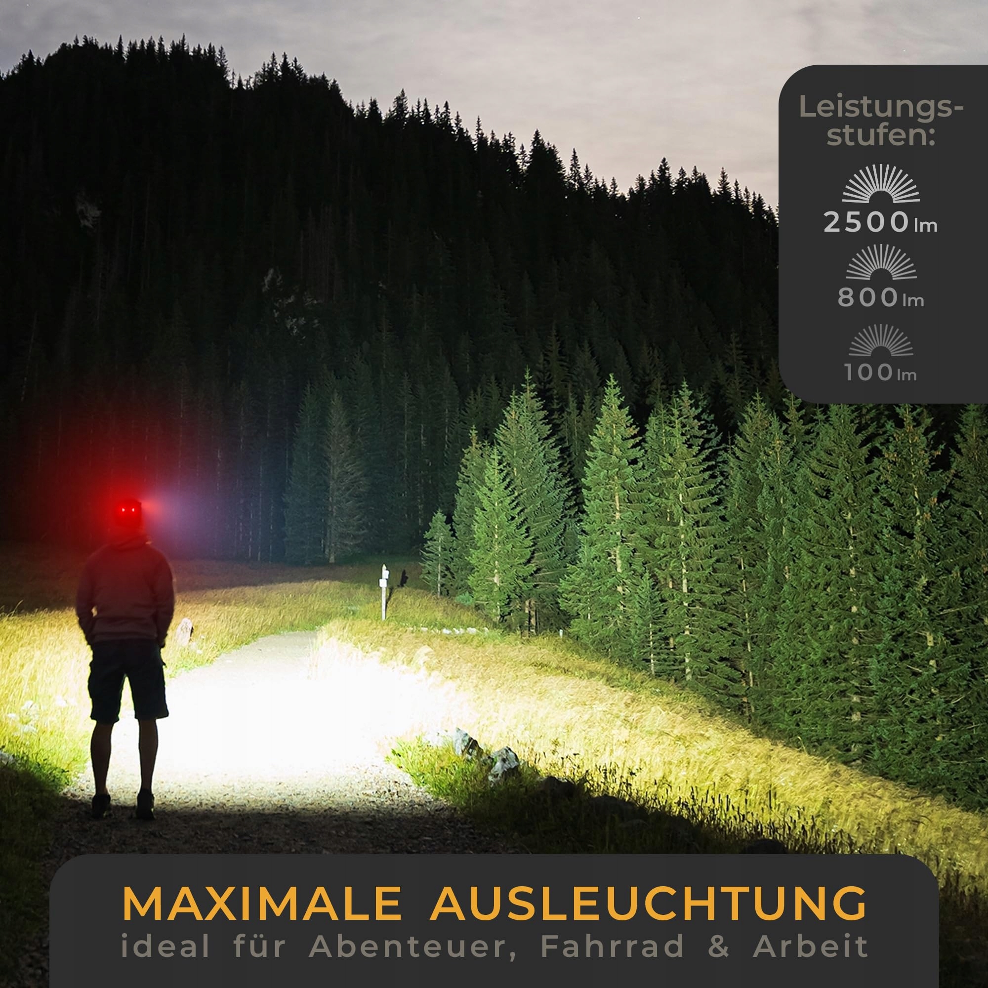 ✅ EKSTREMALNIE JASNA - dzięki 2500 Lumenom noc staje się dniem, gdy włączysz swoją latarkę czołową LED od LICHTMEISTER.