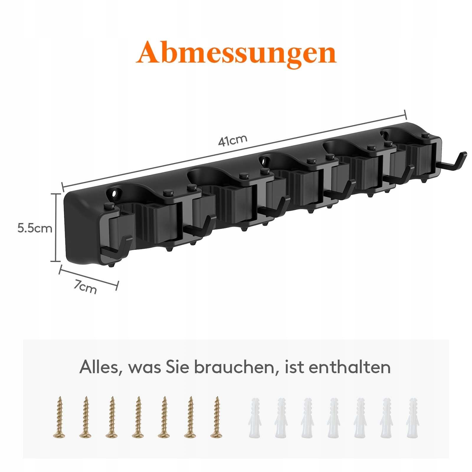 Wewnątrz i na zewnątrz: Uchwyt na miotły ma wymiary 41 x 5,5 x 7 cm i nadaje się do pomieszczeń gospodarczych, garaży, pralni, spiżarni, łazienek, kuchni, ogrodów lub małych domów. Idealny do utrzymania porządku w Twoim domu, aby było czysto.
