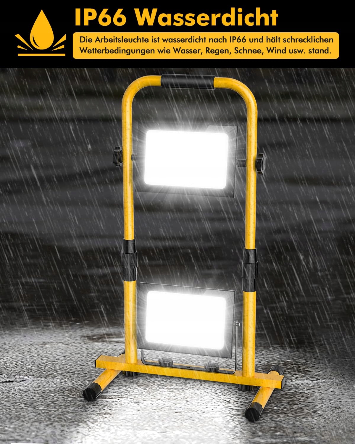 [Wysoka wodoodporność]Wodoodporność tej lampy budowlanej osiąga IP66. Lampa budowlana wykonana jest z wysokiej jakości aluminium i hartowanego szkła, które ma wysoką przewodność cieplną. Może być używana w deszczu, w zimnym/gorącym otoczeniu. (Uwaga: Włącznik nie jest wodoodporny. Proszę go chronić, gdy używasz go w deszczowe dni.)
