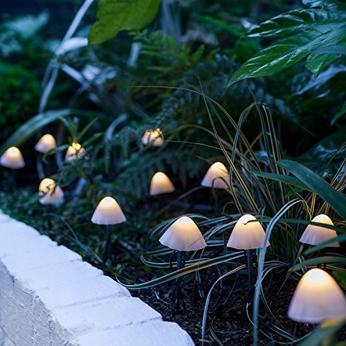 LIGHTS4FUN 12 LED Solarna Girlanda Grzyby Ciepłobiała Oświetlenie Ogrodowe