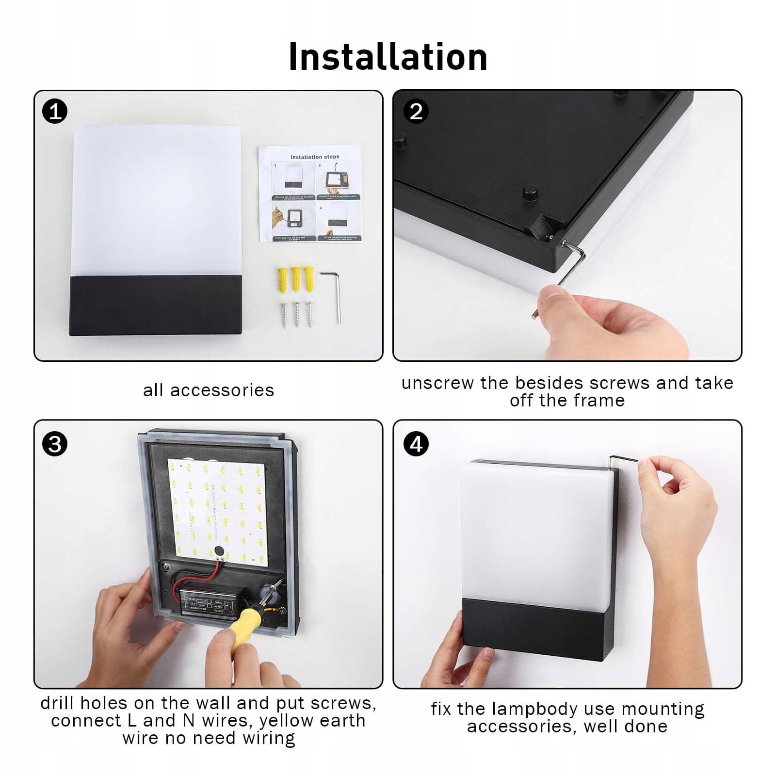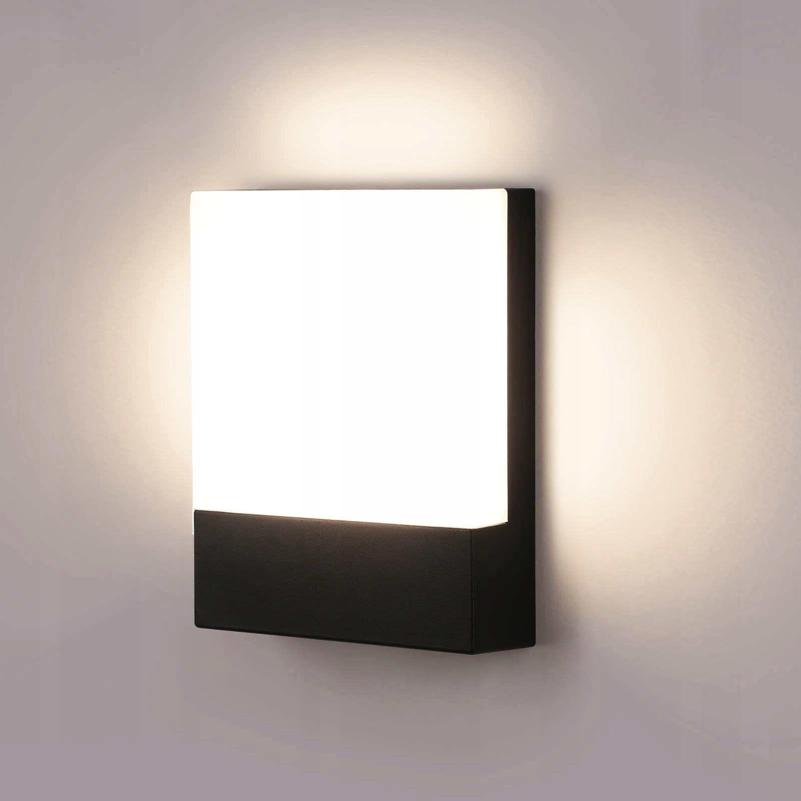 Lampa ścienna, kolor korpusu czarny, materiał korpusu wysokiej jakości czysty aluminium, trwała, wymiary: 20 * 16 * 4,5 cm, napięcie wejściowe: AC85-265V, w zestawie źródło światła: chipy LED.