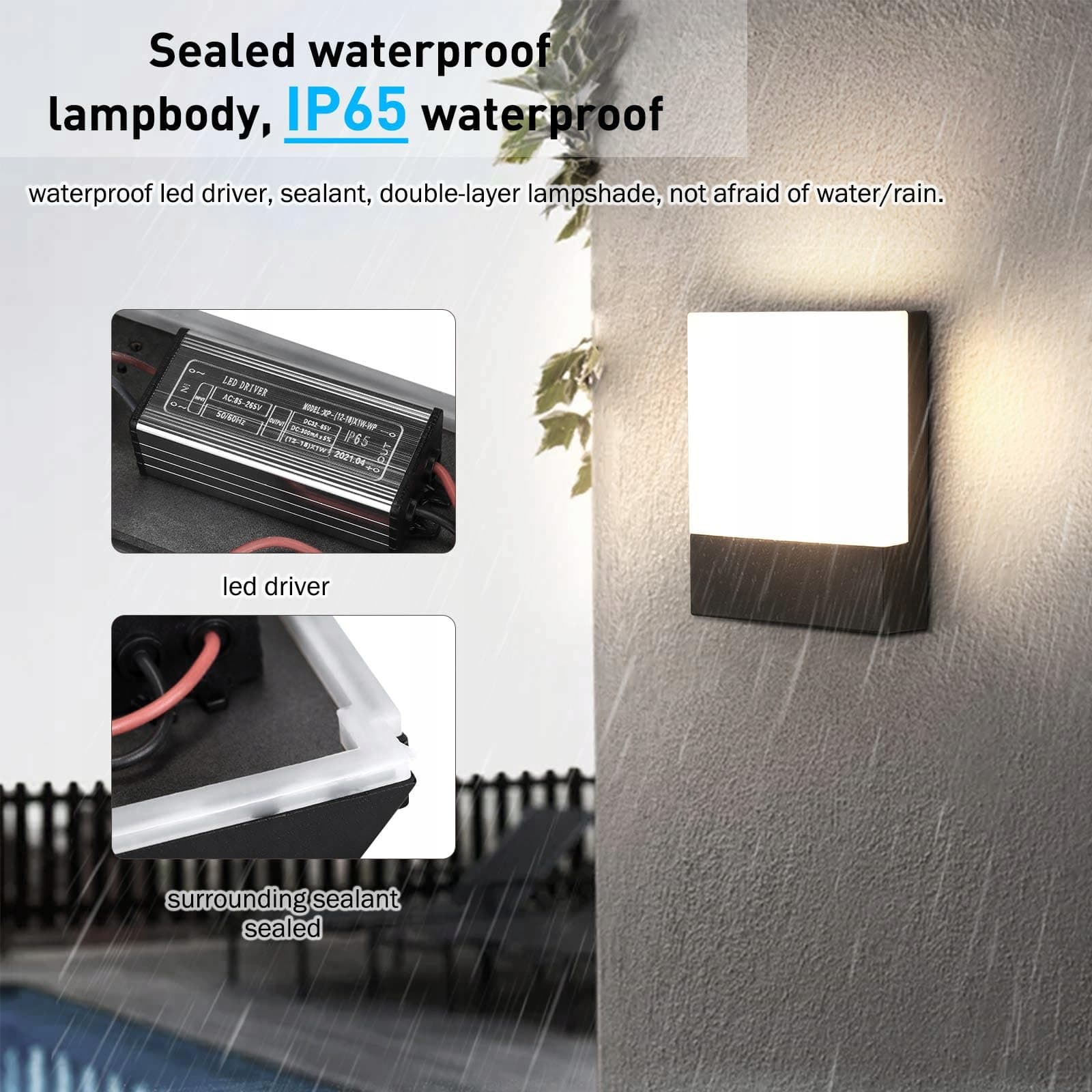 IP65 wodoodporna, z uszczelką obwodową i gumowym pierścieniem uszczelniającym, odpowiednia do całkowitej ekspozycji na warunki zewnętrzne, bez obaw o deszcz.
