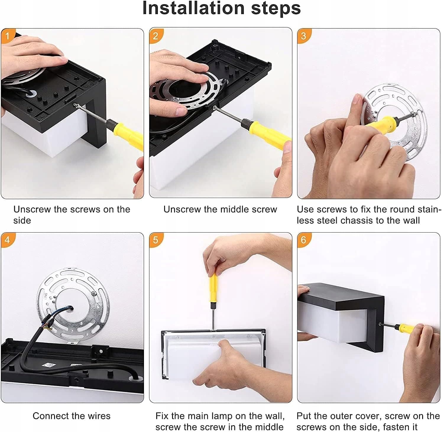 Rozmiar: 26 * 13 * 13 cm, napięcie wejściowe: AC85-265V. 5> Łatwe w użyciu i czyszczeniu, montaż na ścianie, idealne do: obszarów zewnętrznych, ścian zewnętrznych, ogrodów, ogrodzeń, tarasów, ścieżek, patio, podwórek, podjazdów, schodów, garaży itp.