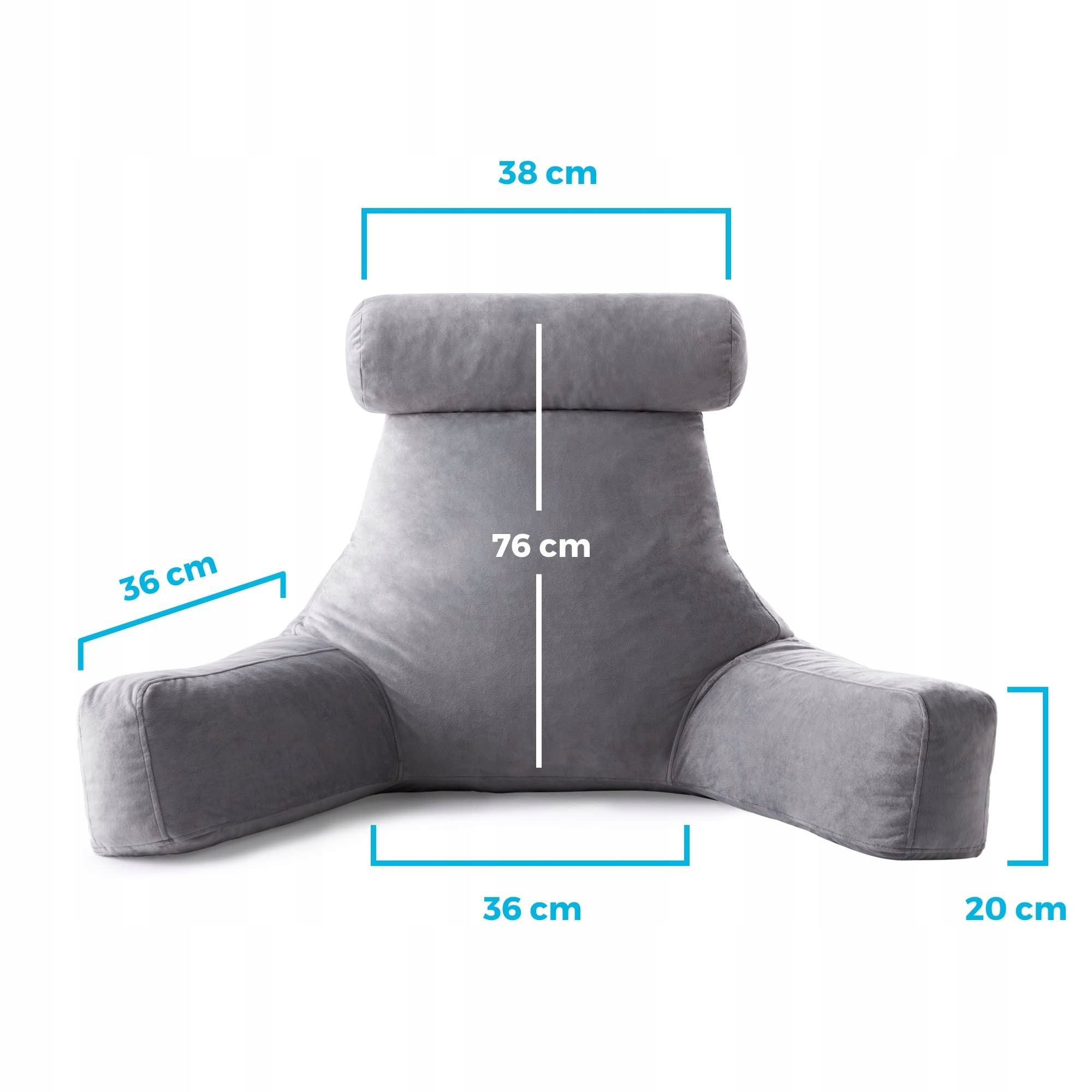 Linenspa ekstra duża poduszka na plecy z podpórką na szyję – poduszka do czytania z rozdrobnionej pianki memory, idealna do podparcia pleców podczas relaksu – miękka welurowa powłoka, szara