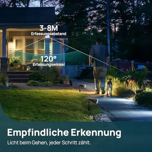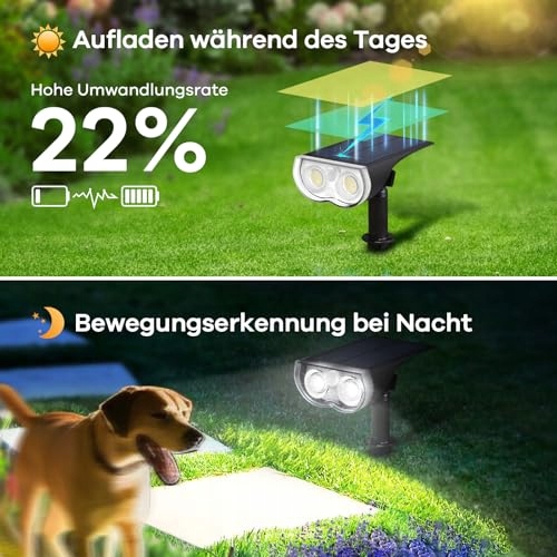 ✔1000LM Wysoka wydajność jasności — Linkind ogrodowa lampa solarna z czujnikiem ruchu wyposażona jest w 22 jasne diody LED, które generują do 1000 lumenów światła, 78% jaśniej niż tradycyjna lampa ogrodowa. Ulepszone i optycznie obrobione soczewki pozwalają na projekcję światła na większą odległość