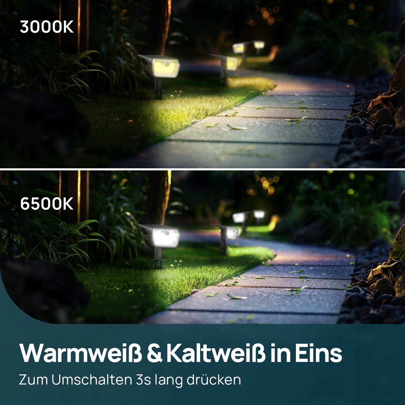 Ciepły biały & zimny biały w jednym: przytrzymaj przycisk >3s, aby przełączyć między ciepłym a zimnym światłem dla różnych scen (np. zimny biały dla ścieżek, ciepły biały dla ścian). Ponadto dostępne są 3 tryby pracy: 1. Tryb światła ciągłego (czujnik nie reaguje) 2. Tryb czujnika: Niskie-Jasne (przez 20s)-Niskie 3. Tryb czujnika: Wyłączone-Jasne (przez 20s)-Wyłączone. Spełnia zasadniczo WSZYSTKIE wymagania dotyczące oświetlenia nocnego
