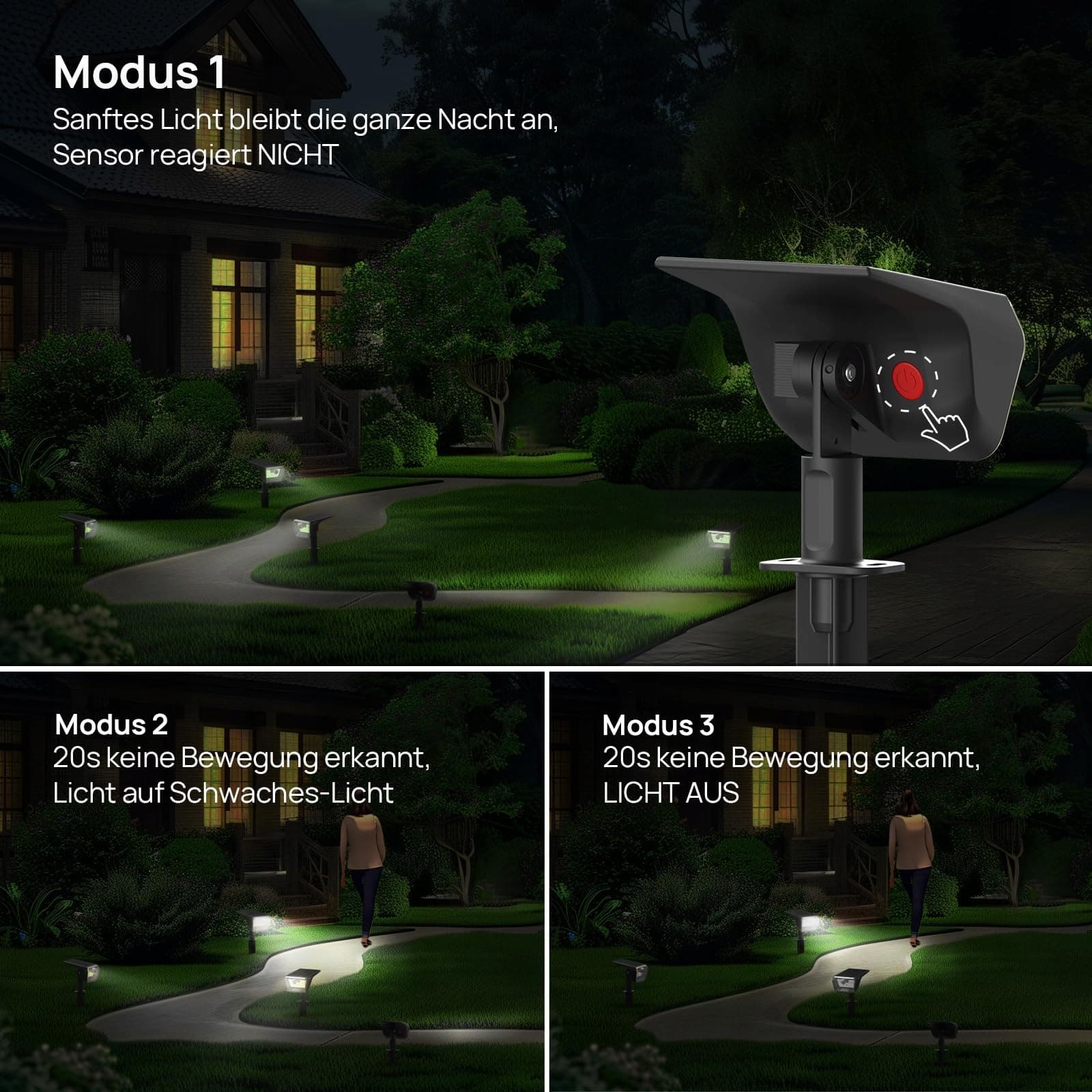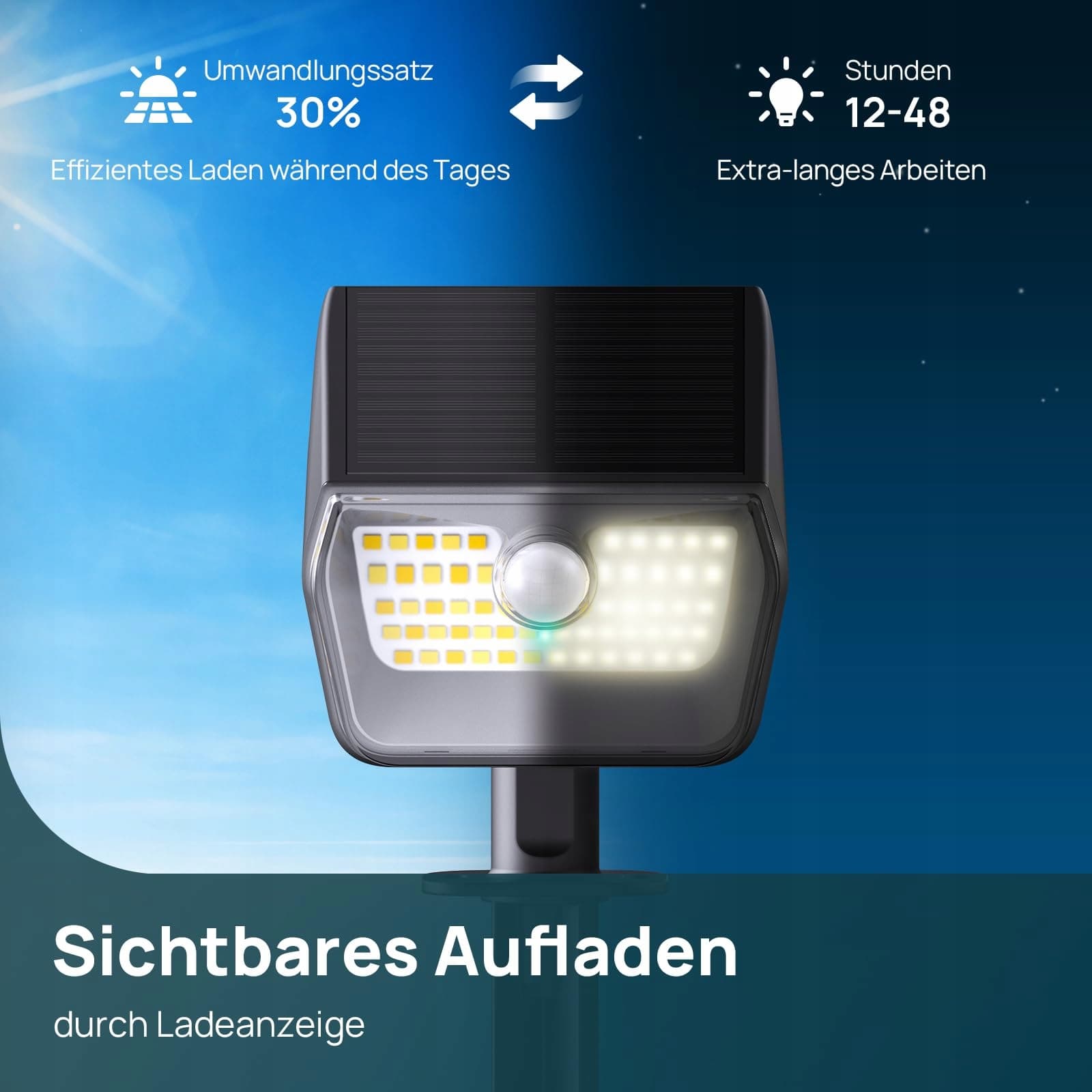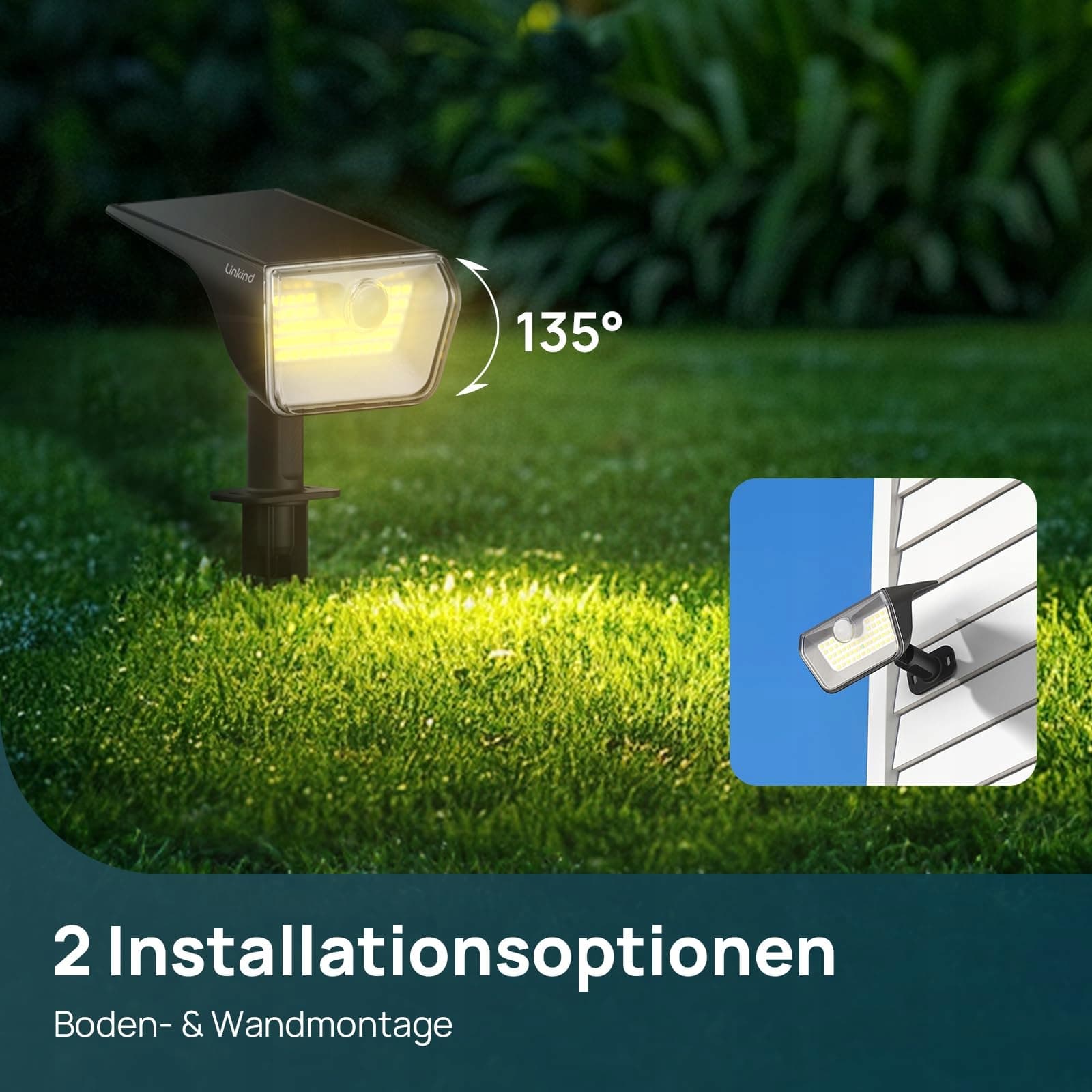 Reflektor szerokokątny z czujnikiem ruchu: Linkind solarna lampa ogrodowa z czujnikiem ruchu ma szeroki kąt oświetlenia 110°. W środku panelu znajduje się czujnik PIR z kątem wykrywania 120° i zasięgiem 3-8m. Jest praktyczny, wygląda nowocześnie i chroni Twoją taras w nocy