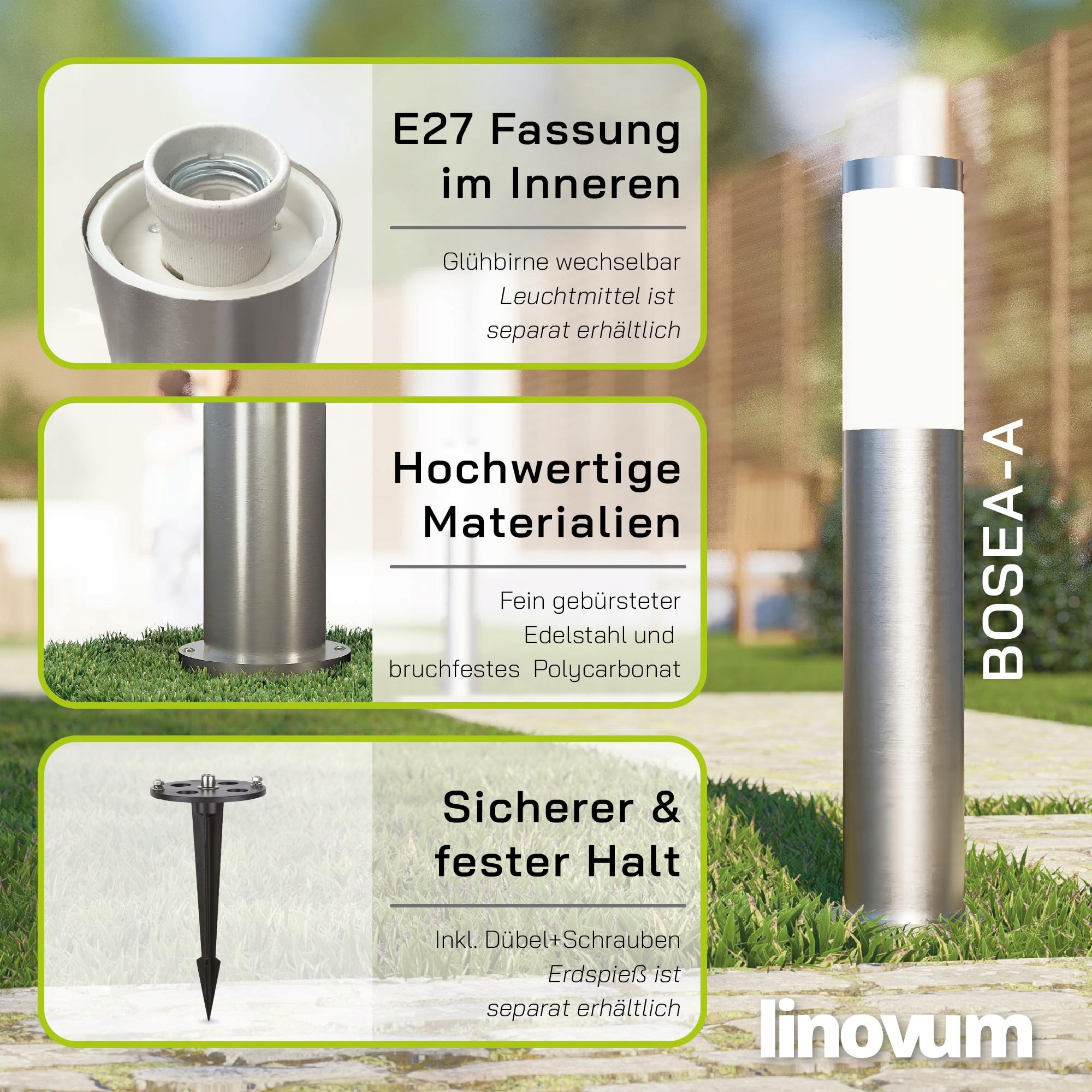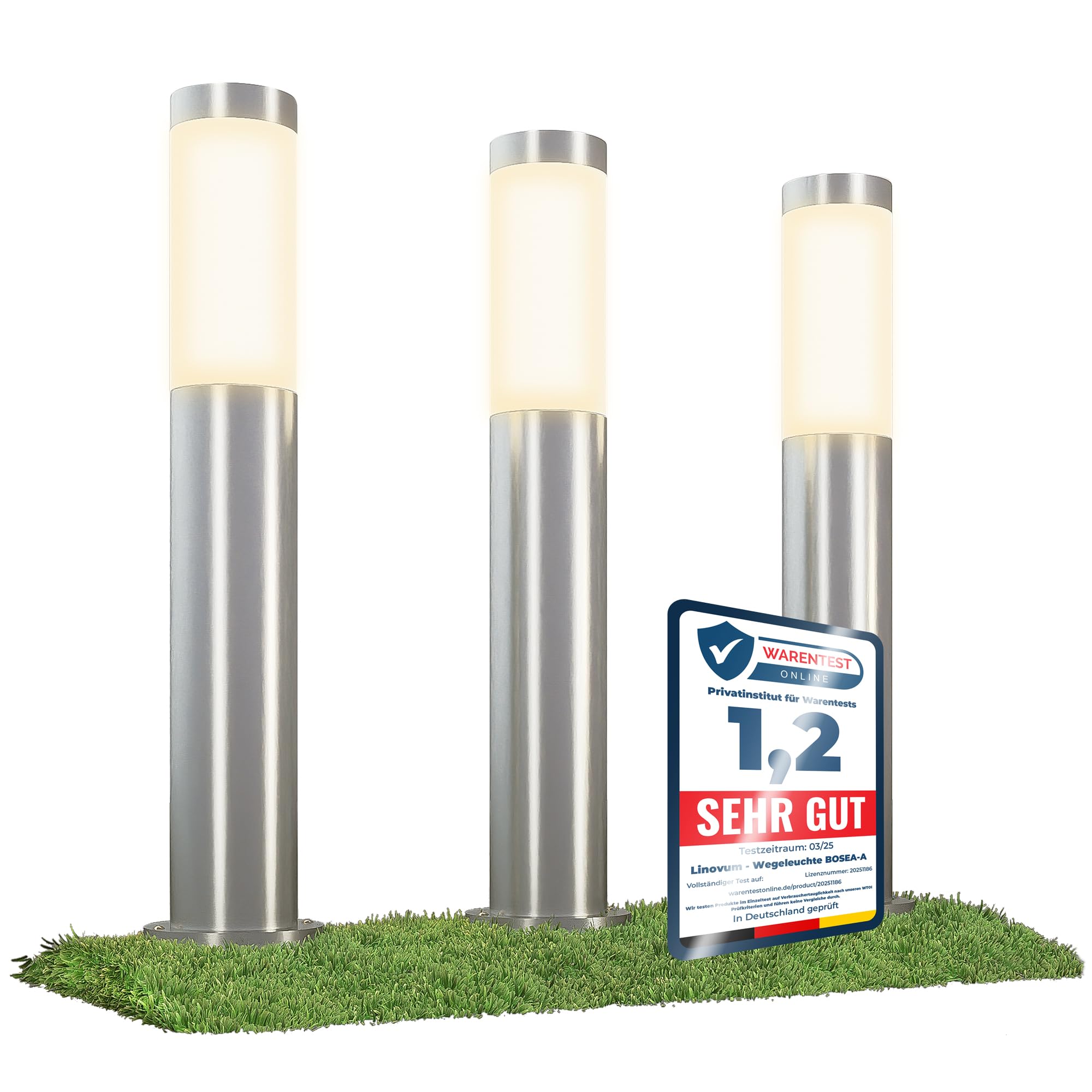 linovum 3-częściowy zestaw BOSEA-A lampa ogrodowa z gniazdem E27 - oświetlenie ścieżek na zewnątrz ze stali nierdzewnej IP44-3x słupek ogrodowy 50cm