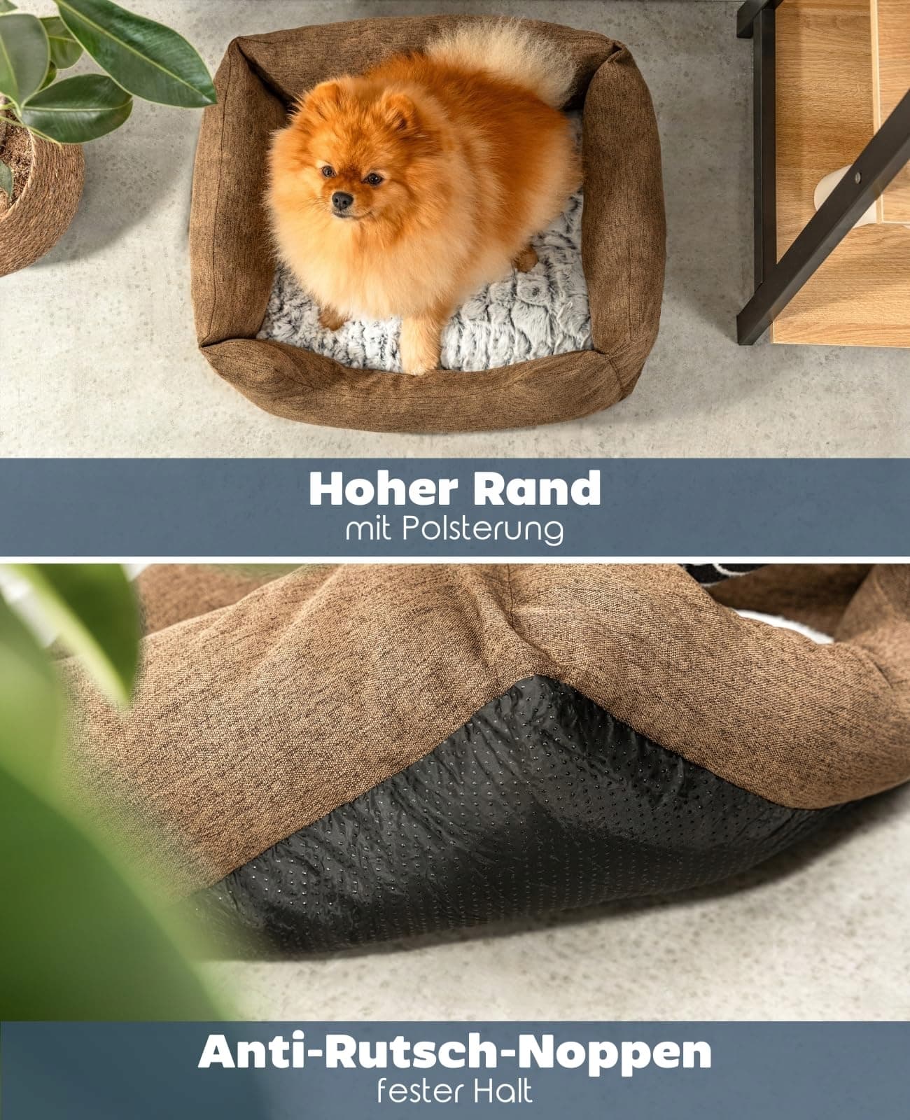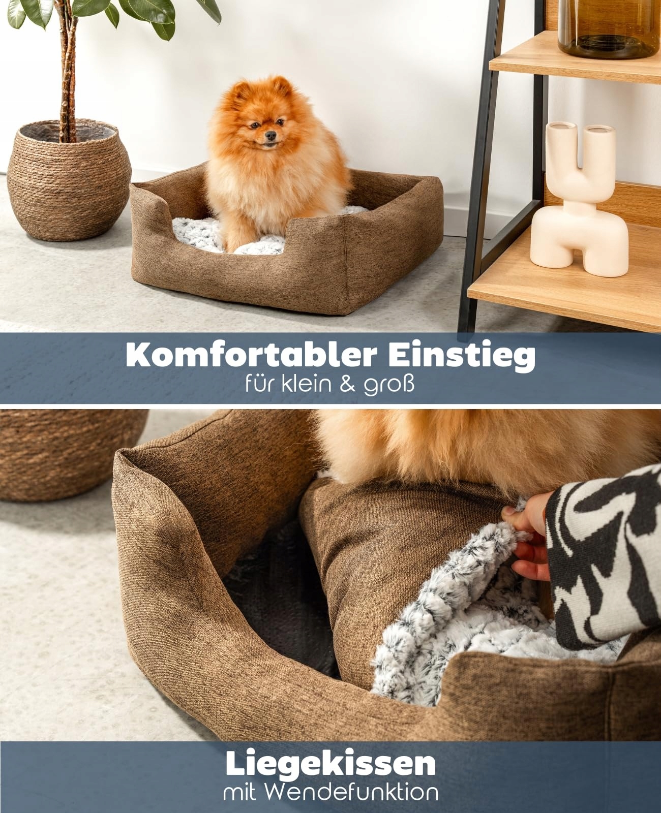 lionto legowisko dla psa z puszystą poduszką dwustronną, przytulne łóżko dla zwierząt domowych w melanżowym designie z głębokim wejściem dla psów i kotów wszystkich rozmiarów, 60x50 cm, miękkie legowisko dla psa, brązowe