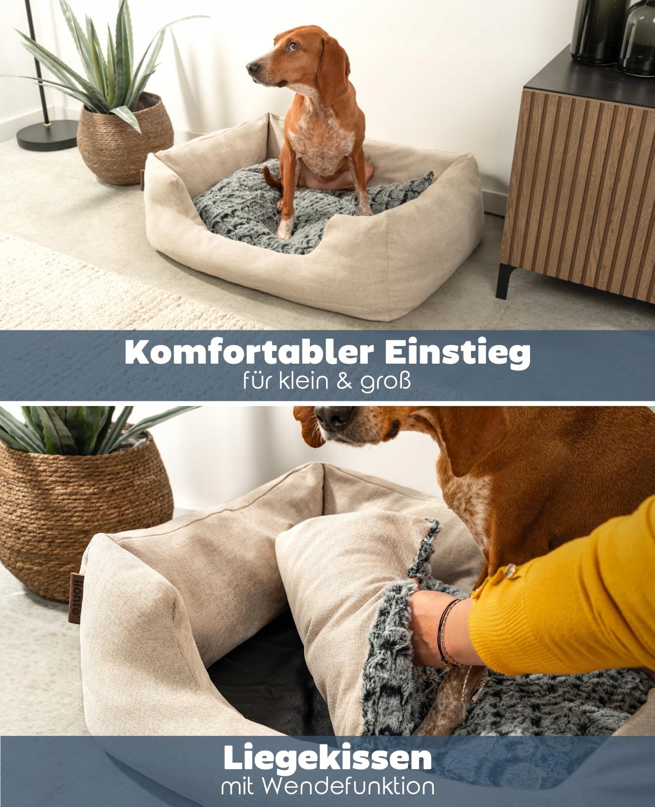 lionto legowisko dla psa z puszystą poduszką dwustronną, przytulne łóżko dla zwierząt domowych w melanżowym designie z głębokim wejściem dla psów i kotów wszystkich rozmiarów, 80x60 cm, miękkie legowisko dla psa, beżowe