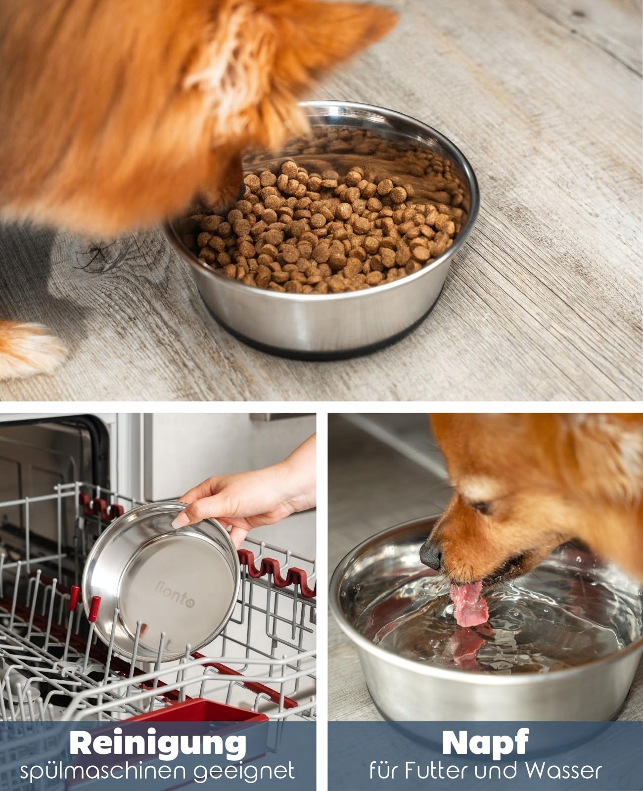 lionto miska na karmę ze stali nierdzewnej, 950 ml, miska dla psa z antypoślizgowym silikonowym spodem, nierdzewna miska na wodę dla psów i kotów, nadająca się do mycia w zmywarce