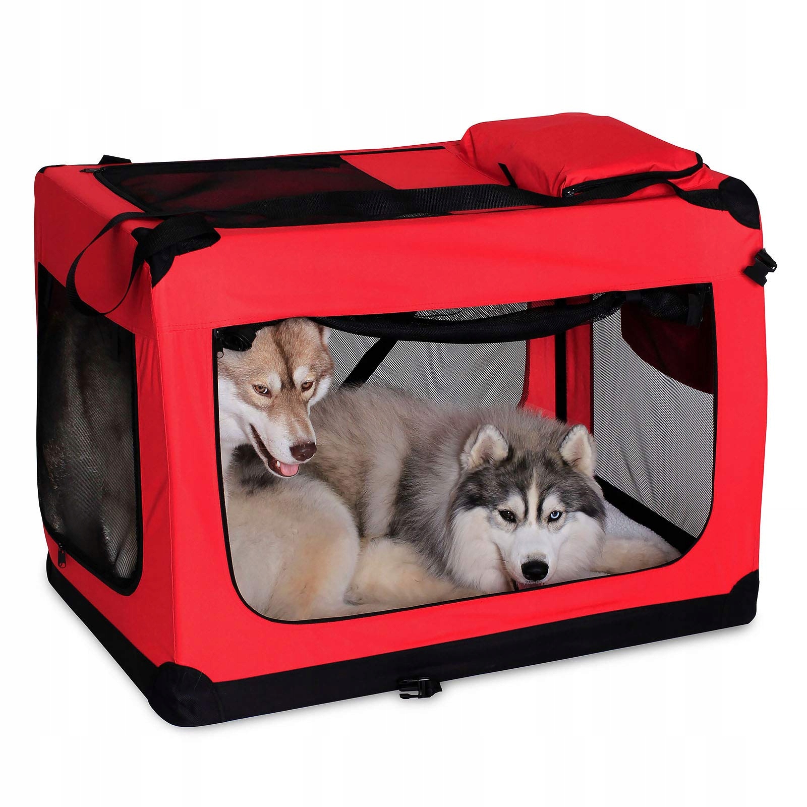lionto Składana klatka transportowa dla psów na podróż i do samochodu, 101x69x70 cm, stabilna klatka transportowa z uchwytami i kocem dla kotów i psów do 25 kg, solidna klatka dla psów z tkaniny dla małych i dużych, ciemnoczerwona