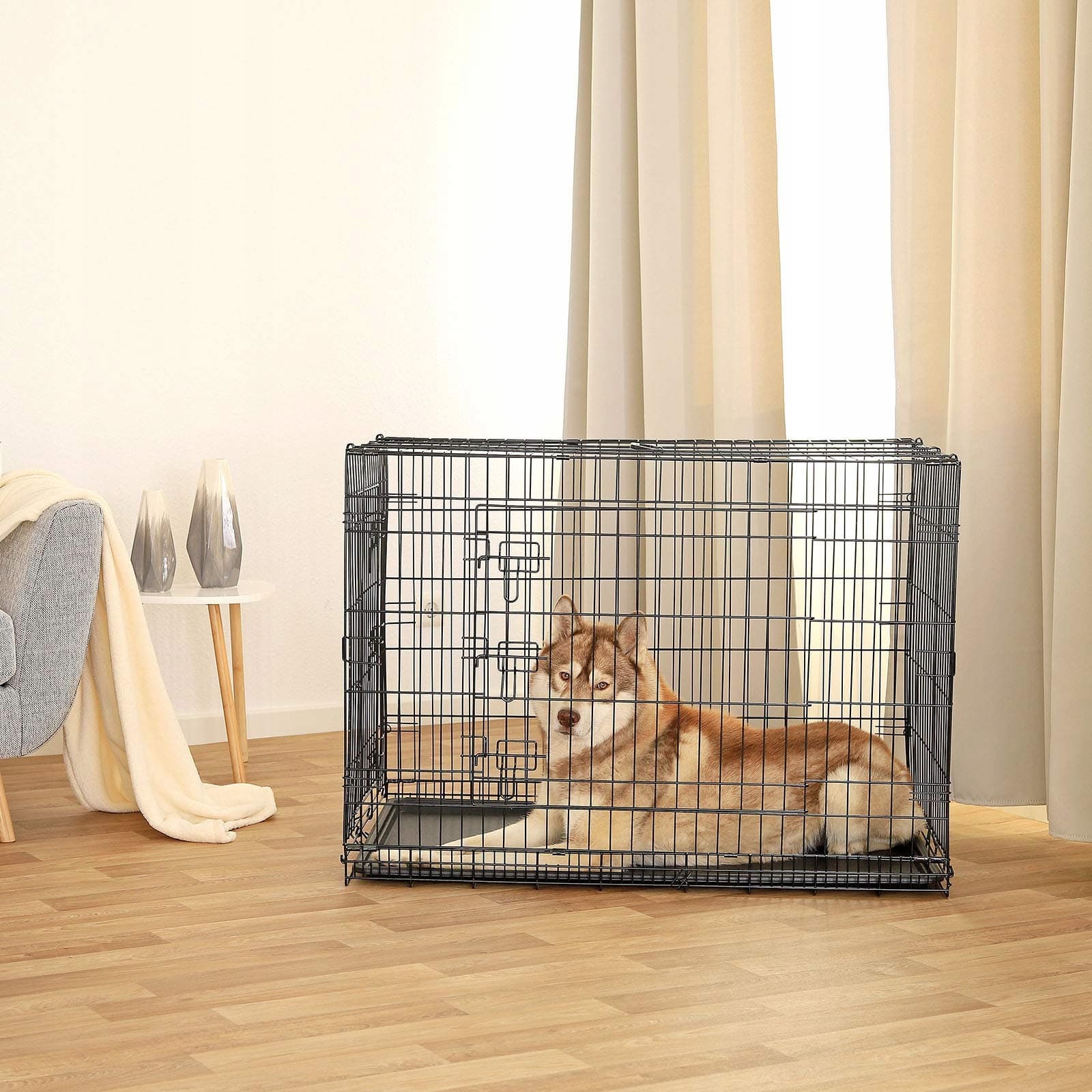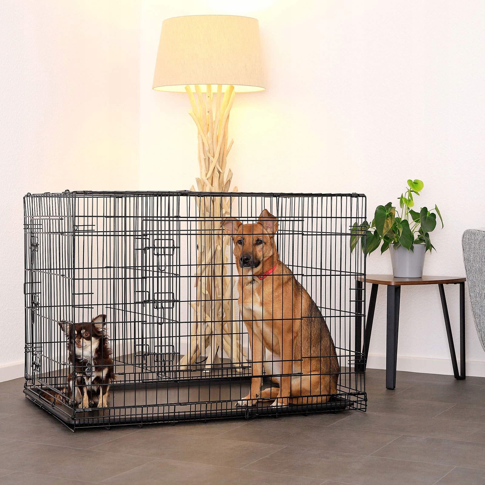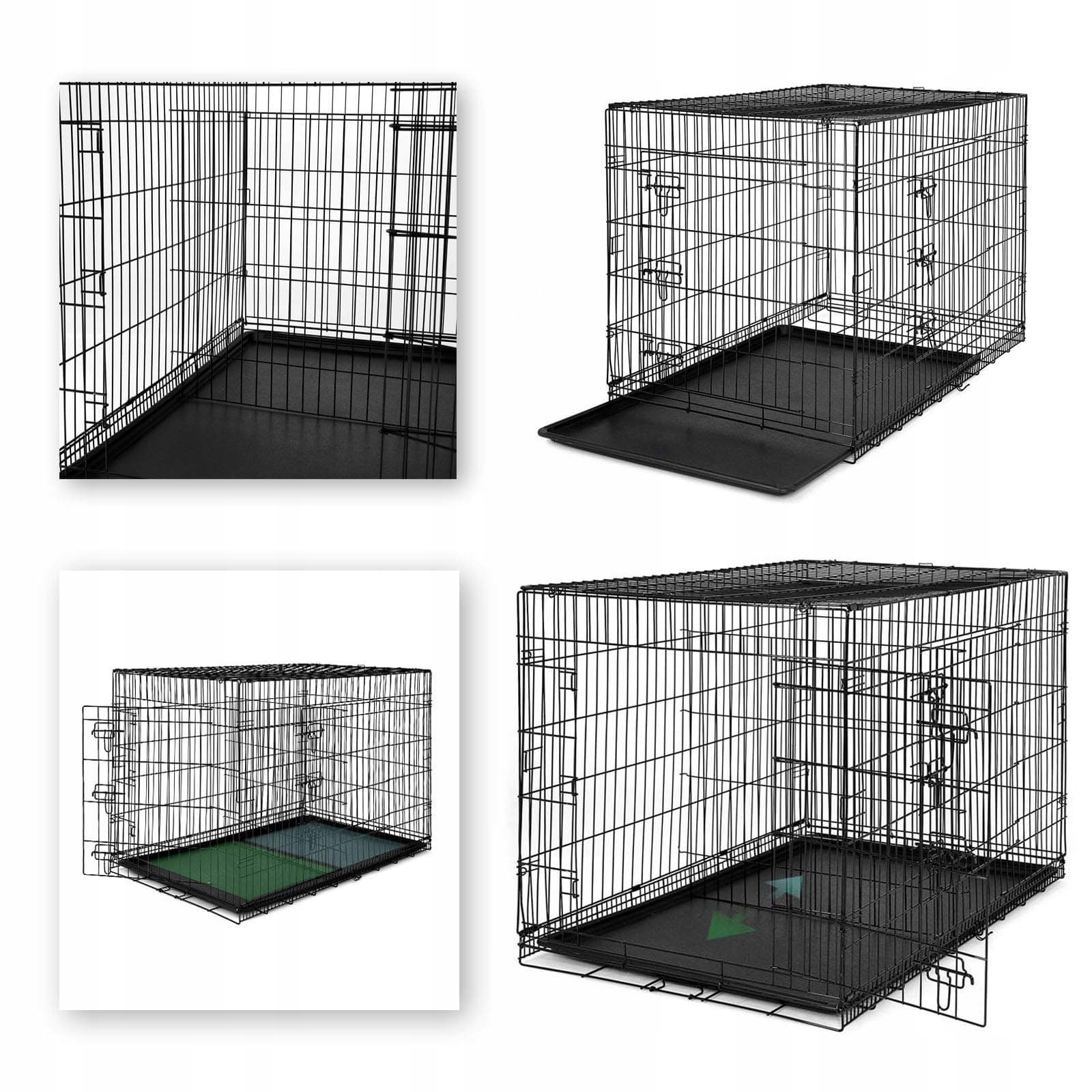 lionto Transporter dla psów i kotów, wszechstronna klatka transportowa z higieniczną plastikową tacą, 106x71x77 cm, metalowa klatka dla psa ze stabilnymi zamkami bezpieczeństwa i przegrodą, czarna