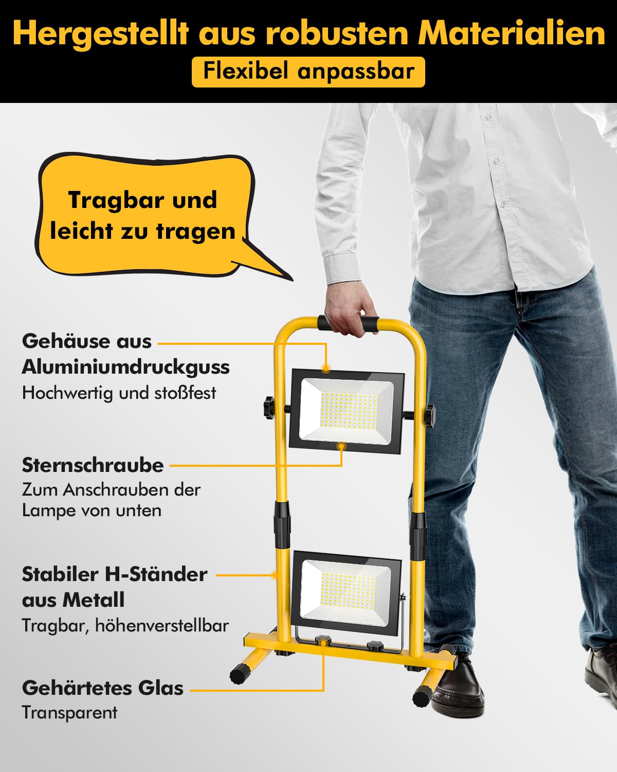 🌧️【IP66 Wodoodporność i pyłoszczelność】: Reflektor budowlany LED Litglobe wykonany jest z wysokiej jakości aluminium i hartowanego szkła, oferując szybką przewodność cieplną, odporność na uderzenia i korozję. Dzięki klasie wodoodporności IP66, reflektor jest chroniony przed deszczem, kurzem, śniegiem i mgłą, i może być stabilnie używany w środowiskach od -25 °C do +55 °C.