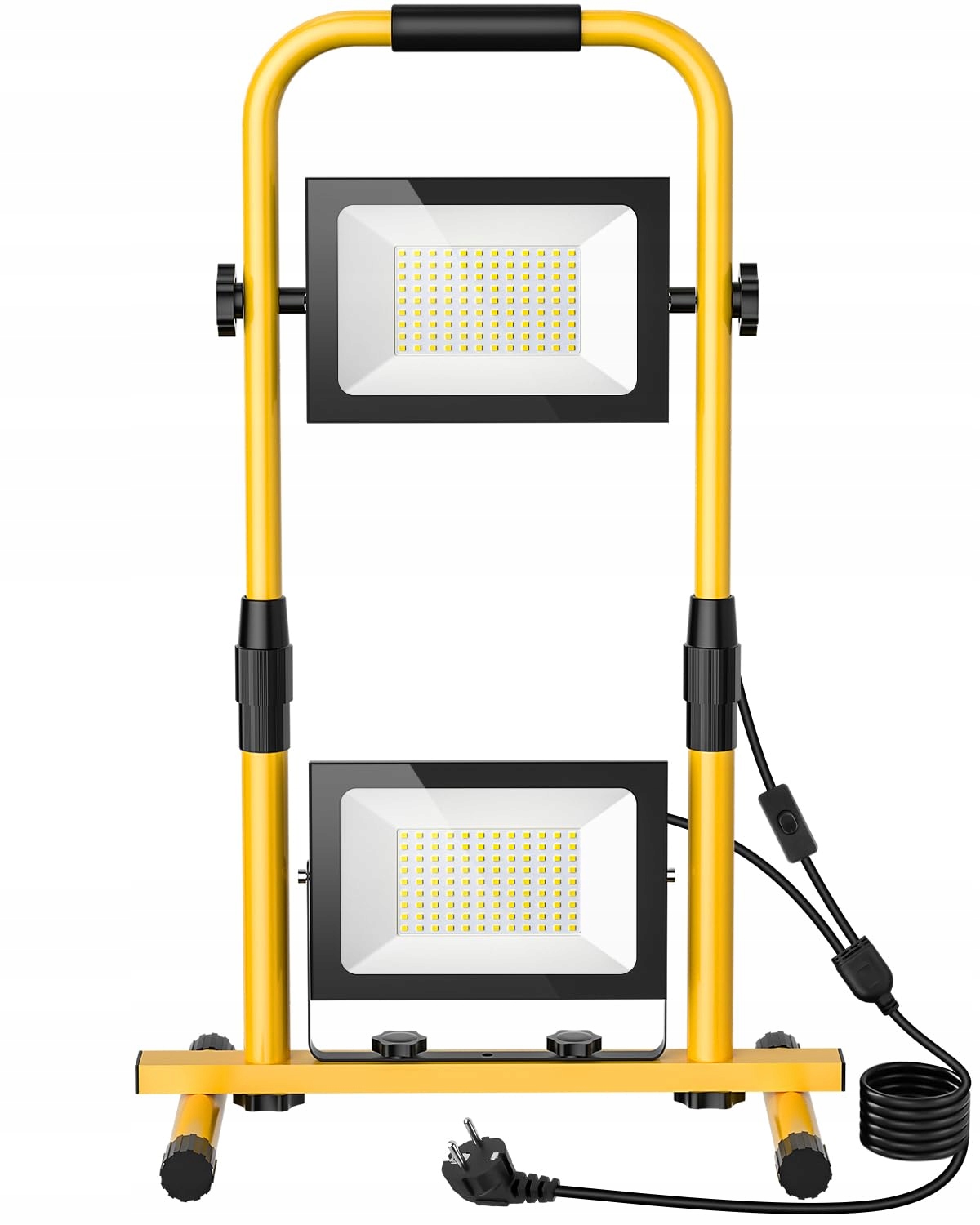 Reflektor LED z regulowanym statywem 200W, 20000LM Lampa budowlana z 3M kablem, wtyczką i przełącznikiem, 6500K zimna biała lampa robocza LED, IP66 Wodoodporna przenośna lampa budowlana do warsztatu i placu budowy