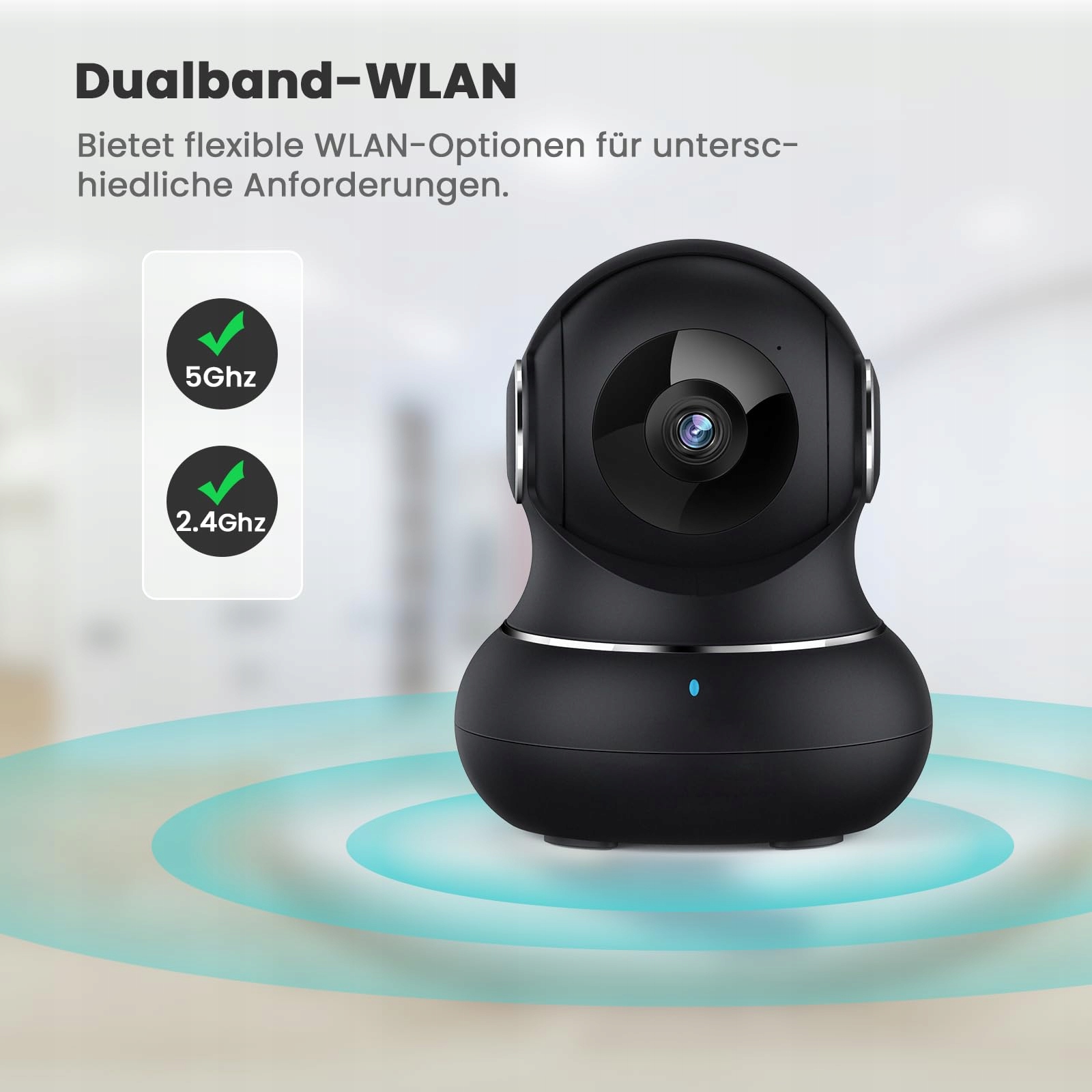 【Pasma WiFi 5GHz/2,4GHz Dual】 Ta kamera do monitoringu wewnętrznego obsługuje zarówno częstotliwości WiFi 2,4 GHz, jak i 5 GHz, co umożliwia szybsze i stabilniejsze połączenie. 5 GHz oferuje silny sygnał dla niezawodnej transmisji, podczas gdy 2,4 GHz zapewnia większy zasięg – idealne do elastycznego streamingu i zdalnego dostępu.