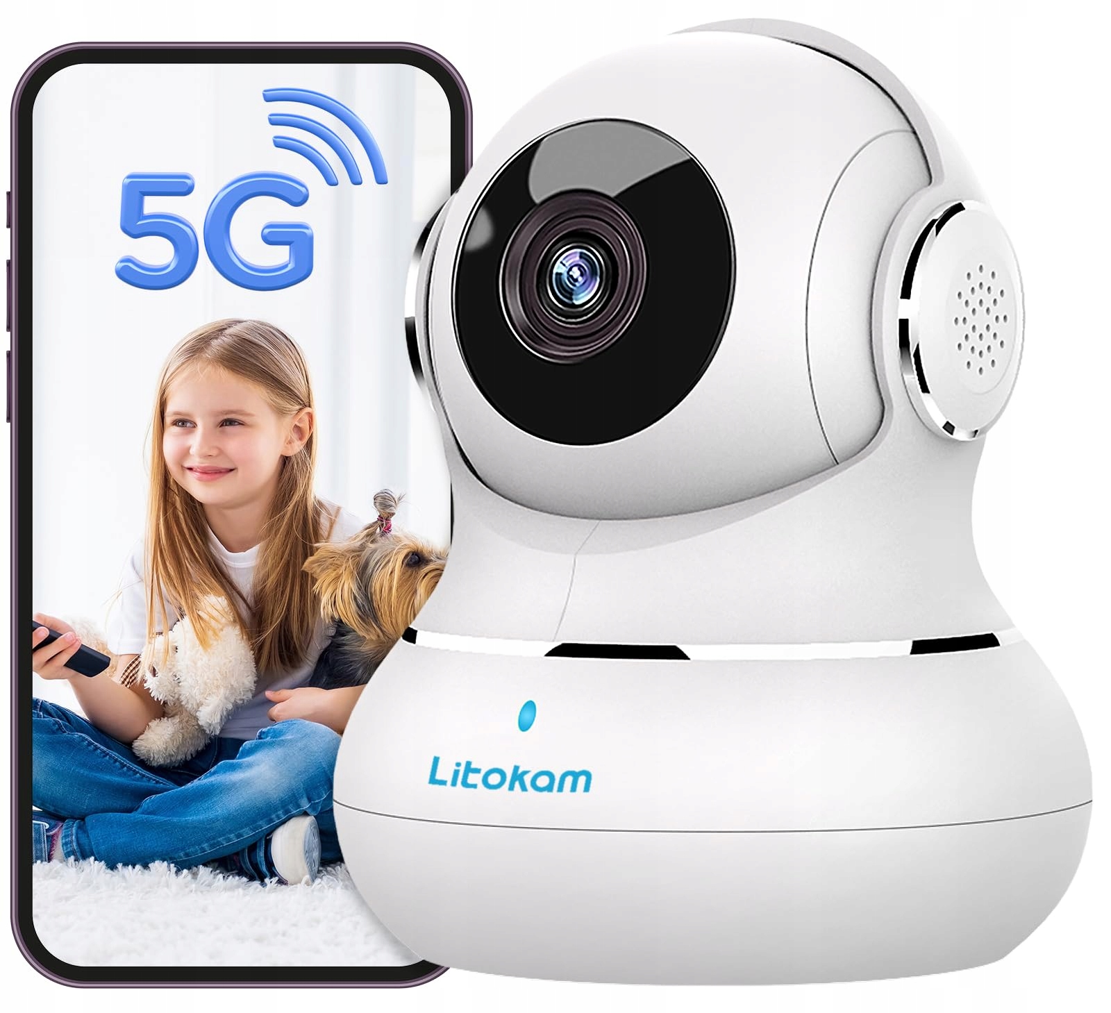 litokam Kamera monitorująca do wnętrz, niania elektroniczna z kamerą 2.4/5ghz Dual-Band WLAN kamera dla psa z aplikacją, kamera 5MP do monitoringu wnętrz z AI wykrywaniem ruchu, Pan/Tilt, Zoom, kompatybilna z Alexa