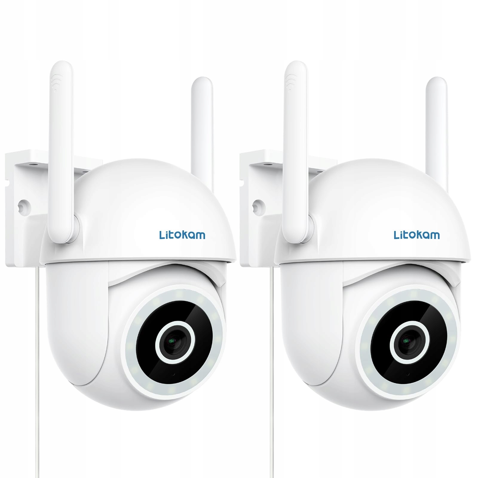 litokam Kamera monitorująca na zewnątrz 2.5K, 4MP WLAN Kamera zewnętrzna z czujnikiem ruchu, 360 stopni kamera monitorująca na zewnątrz do niani z kamerą, kamera zewnętrzna do użytku wewnętrznego z nagrywaniem (2 sztuki)