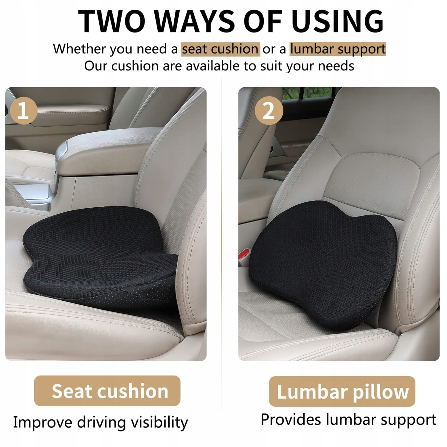 Poprawa kąta widzenia - Nasza poduszka siedzeniowa do samochodu jest idealna dla niskich osób. Z grubością 3,5'' nasza podkładka samochodowa działa jako podwyższenie siedzenia, oferując kilka centymetrów uniesienia, aby poprawić Twój kąt widzenia.
