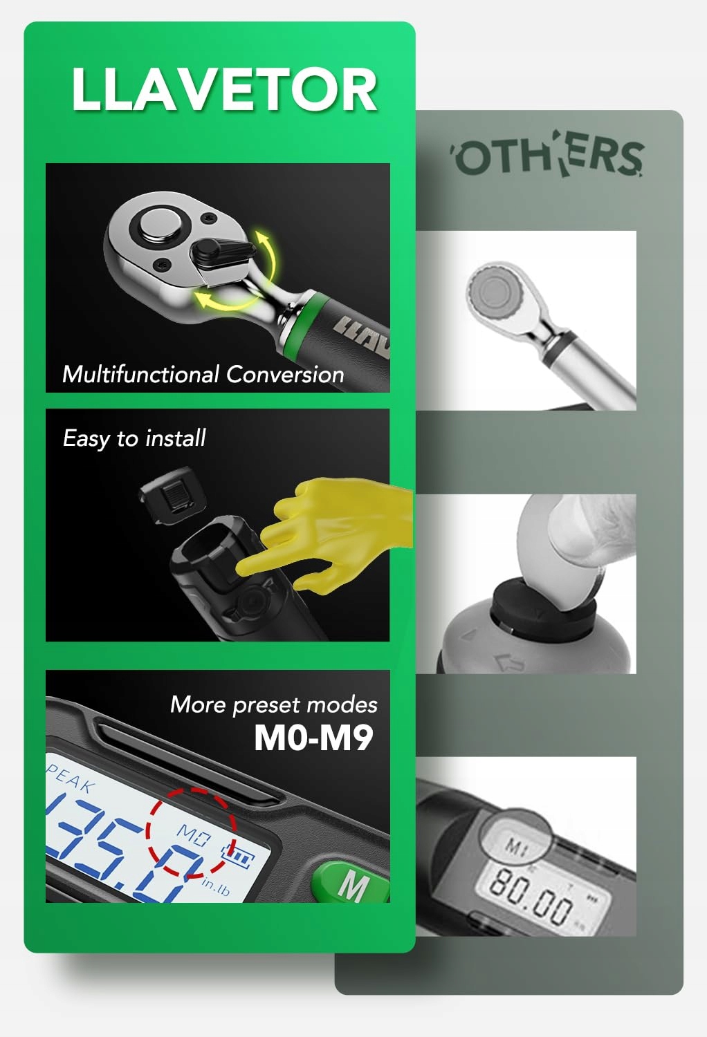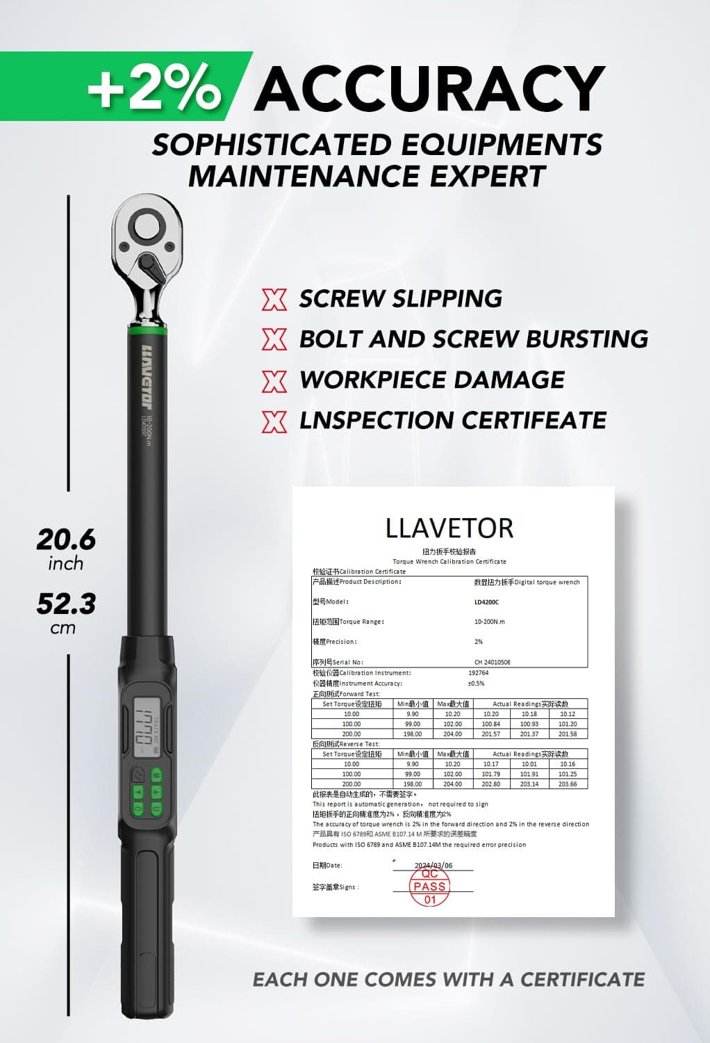 LLAVETOR Cyfrowy klucz dynamometryczny 1/2 cala, ±2% dokładności błędu, klucz dynamometryczny do rowerów i motocykli z sygnalizatorem dźwiękowym i powiadomieniem LED (1/2", 10-200Nm)
