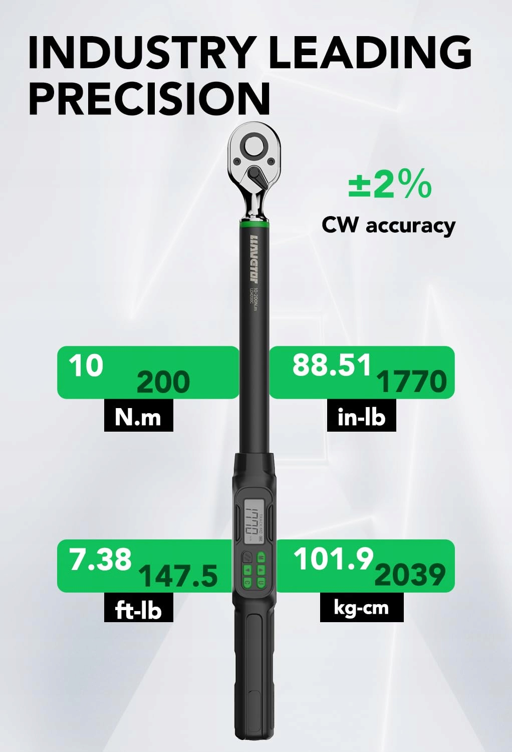4 tryby jednostek: Nm, in-lb, ft-lb i kg-cm